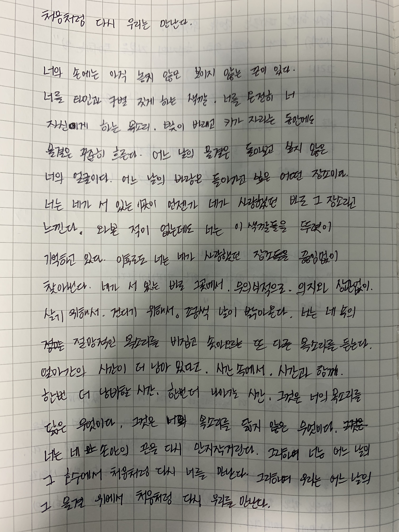 그렇게 다시 책상에 앉았다. 그리고 보던 책을 계속 읽고 있던 중 우연히 문학을 읽고 싶었다. 그리고 어렵게 내 책장에서 몇 없는 문학작품, 이제니 시집을 찾게 되었다. 그리고 읽었다. 처음에는 이해하려고 했지만 이해하려고 할수록 시는 어려웠다. 그래서 그냥 흘러가는 대로 읽어봤다. 아직도 어렵다. 그러나 시집을 읽는 행위만으로 마음이 편안해졌다. 오늘 같이 비가 오는 날에는 시집이 어울렸던 걸지도.