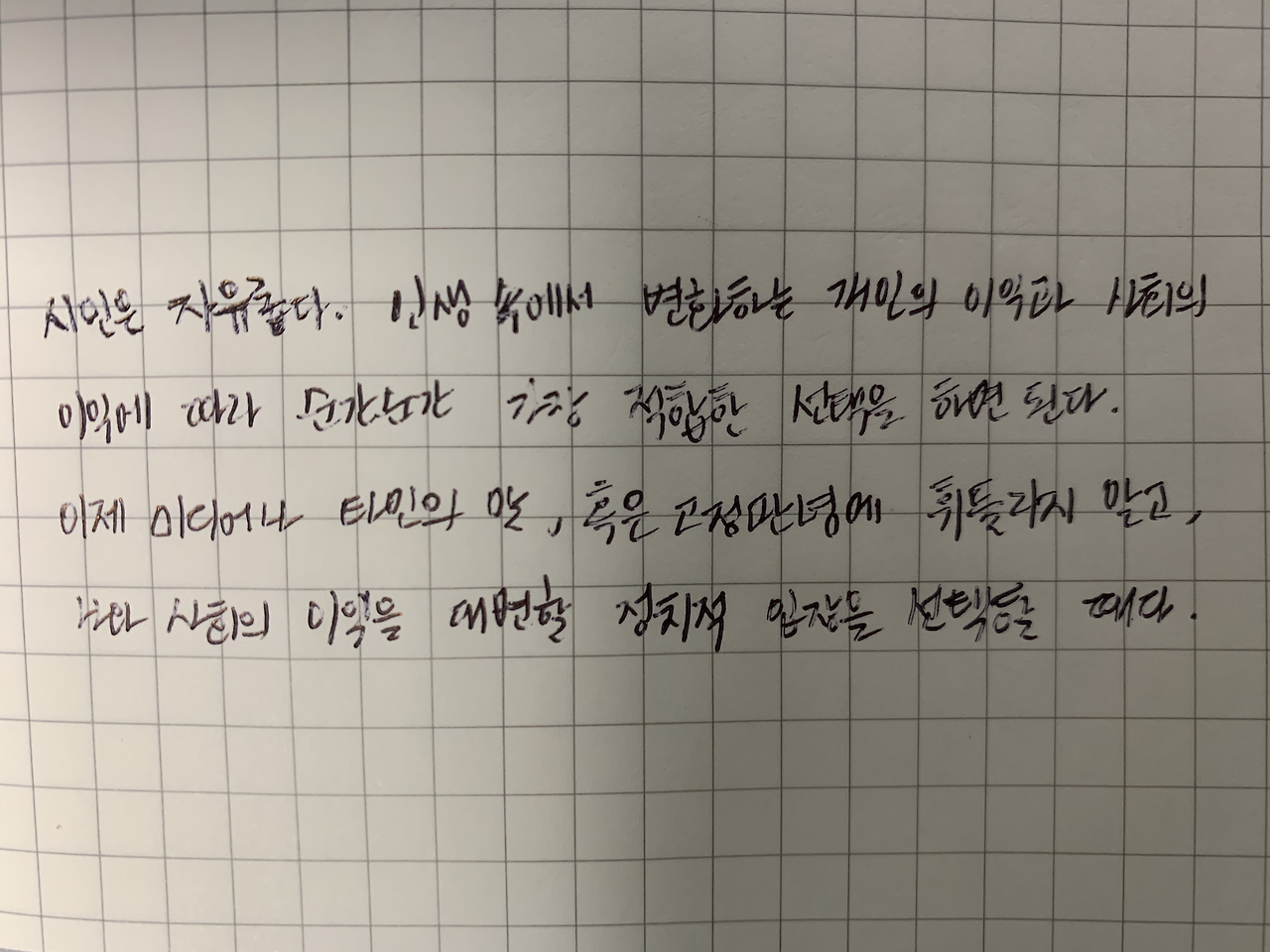 시민은 현실을 살아가는 과정에서 무수히 많은 선택의 상황에 놓일 수밖에 없다. 전체성과 개체성 사이에서, 구성원과 개별자의 사이에서 우리는 현실을 대면하는 것이다. 하지만 보통은 사회의 방대함과 복잡함 속에서 쉽게 길을 잃는다. 그것은 우리의 판단 능력이 부족하기 때문이 아니라, 너무나 많은 정보가 쏟아지기 때문이다. 현실의 팍팍함 속에서 무엇이 옳고 무엇이 그른지 고민할 시간적 여유가 없는 것이 문제다.