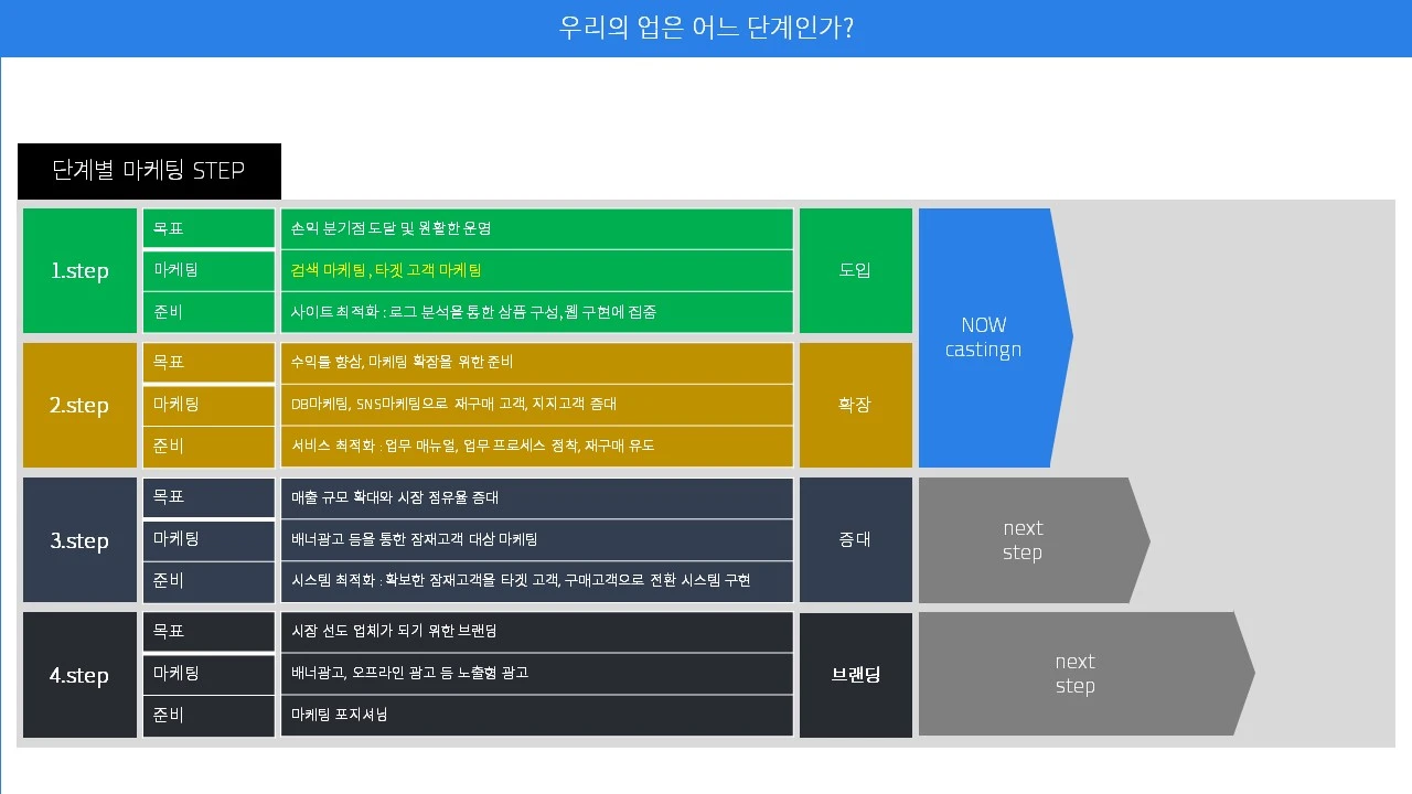 예를 들어, 서비스나 프로덕이 아직 듣보잡인데, 멋진 슬로건만 있다고 해서, 어느 날 갑자기 유명해 지거나 매출이 향상되거나, 인지도가 올라가는 건 아니다. 성장 수준과 메시지의 맥락이 일치해야 현재 수준에서 유효한 메시지 효과를 발휘할 수 있다.