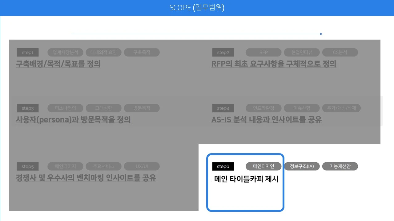 웹 기획 특성상 업무 순서가 있다. 메인 카피와 이미지 선정은 기획의 마지막 단계다.