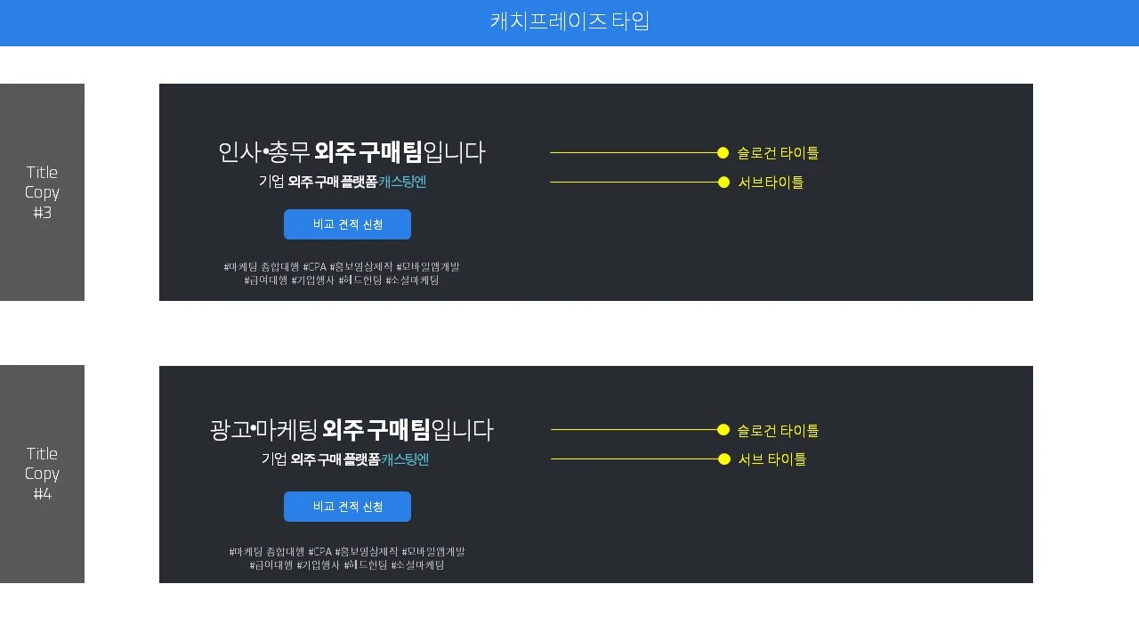 - 우리의 사업 영역을 정의해 주는 메인타이틀 카피