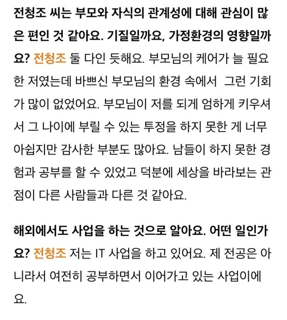 25일 디스패치의 보도에 기사를 다시 보기 시작했다. 이제야 이상한 느낌이 확신이 되고, 허술한 거짓말들이 보이기 시작했다. 인터뷰에서 보인 이상한 점 발언 별로 한번 짚어 보면 좋을 것 같다. 앞으로 결혼을 준비하거나, 사업을 준비하거나, 투자를 하거나 일상생활을 살아가는 데에 사기꾼을 피할 수 있는 큰 자양분이 될 수도 있을 것 같다. 그리고 전청조라는 사람의 심리를 분석하는 것도 재밌을 것 같아서 글을 써본다.