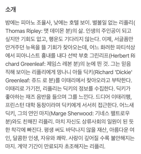 이런 내용이 영화로도 있다. 한글 제목으로는 리플리 영화의 원제는 “The talented Mr. Ripley”