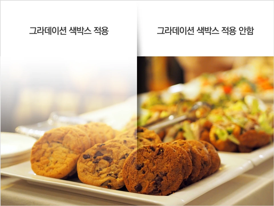 이렇게 그라데이션을 활용하면 굳이 전체를 다 채우는 배경 사진이 아니라도 일부 부분에 사진 이미지를 삽입할 수 있다.