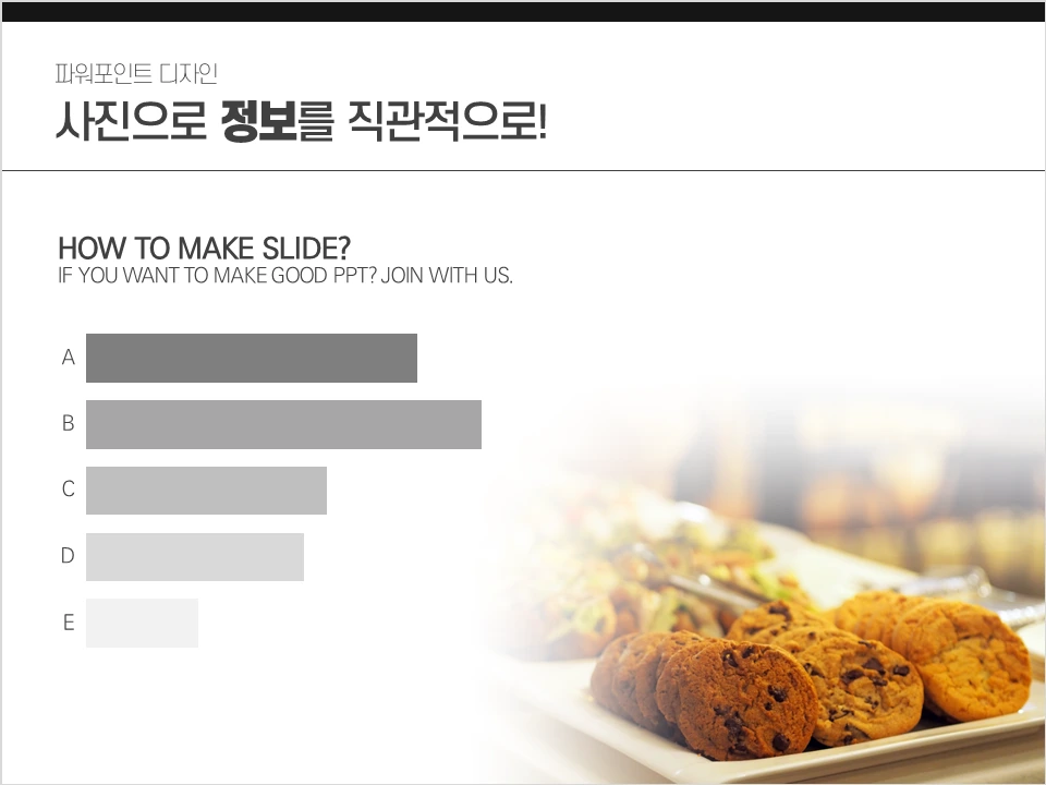 앞에서도 말했지만 좋은 사진은 좋은 디자인을 빠르게 만들 수 있게 하고 단축한 시간으로 내용에 더 집중할 수 있게 해준다. 그런 의미에서 좋은 사진은 좋은 PPT를 만든다. 계속 파워포인트 디자인에 관한 글을 쓰고 있지만 이는 최소한의 이론으로 최소한의 디자인을 적용하자는 것이지 디자인에 올인하자는 것은 아니다. 전문 디자이너가 아니라면 디자인은 부차적인 요소라 생각하자. 내용이 부실하면 디자인도, 최종결과물도 좋을 수 없다.