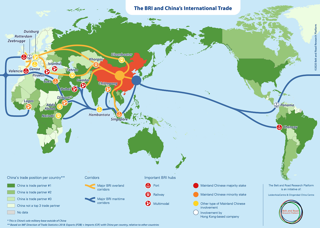 (미국의 패권과 첨예하고 부딪치고 있는 중국의 세계전략 일대일로 구상도, 지도를 보면 지리 전략이 명확해진다. 중국은 러시아오 유럽, 아프리카와 연결하였다. 이미지출처, clingendael.org)