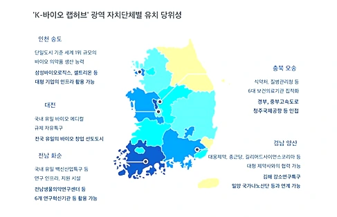 (K-바이오 랩허브 경합 후보지 , 이미지 출처, 중소벤처기업부)