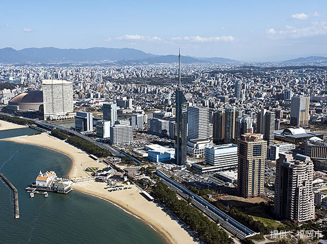 (후쿠오카시. 면적은 343㎢로 대전광역시(540㎢)에서 유성구 면적(177㎢)를 뺀 것 보다 좀 작은 크기이다. 인구는 161만, 지역내총생산(GRDP)은 7조 1,974억 엔(2005년 기준)으로 대전시 보다 약 1.7배 많다. 대전과 같이 광역권으로 세력을 주도하기에는 규모를 키워야 하는 과제를 가지고 있다, 사진 출처,