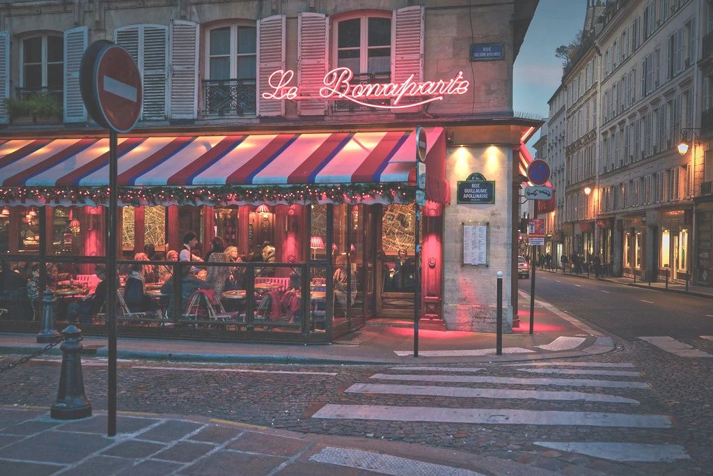 (이방인으로서 혼자가 되어 파리의 골목을 걷는다면, 빠지고 싶은 환상으로 ’Midnight in Paris,‘의 도시 안내가 시작된다. 도시의 문화경쟁력은 거울 속 거울, 액자 속에 액자같이 중첩하여 이어지는 사건과 시대를 넘나드는 이야기로 증식된다. 사진출처, Jim Nix, A corner cafe in Paris, flickr)