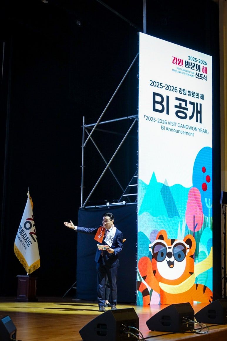 강원특별자치도와 강원관광재단은 11월 25일 오후 한림대학교 일송아트홀에서 '2025-2026 강원방문의 해' 선포식을 개최했다. 이 자리에서 강원관광재단 최성현 대표는 ‘강원방문의 해’ 브랜드 아이덴티(BI)에 대해 "'2025-2026 강원방문의 해'는 강원의 청정자연을 형상화했다.”라고 밝혔다. 최 대표는 “푸른 동해바다와 새날을 밝히는 태양과 깊고 울창한 산림은 강원 관광의 기본 자산”이라고 말하며 브랜드 심벌의 부드러우면서도 힘찬 태극 문양은 “편안한 휴식과 역동적인 액티비티를 함께 즐길 수 있는 강원특별자치도가 대한민국의 대표 관광지임을 상징한다.”라고 설명했다.