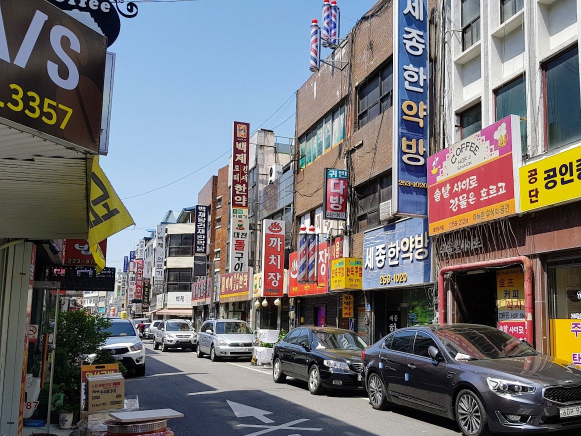 사진/(대전역 부근의 중앙로 한의약특화거리가 허전하게 명맥을 잇고 있다. 이런 거리는 기존의 건물을 매입하여, 약제박물관을 만들고, 쌍화탕 향기 가득한 완전히 걷는 골목으로 만들어야 한다. 인쇄골목 인근에 자리하고 있는 이 한약방 거리는 6.25 전쟁 이후 본격 조성되기 시작하여, 한때 한의원, 한약방, 탕제원 등 약 100여 개 관련 업소가 번성한 약제거리였다. 그러나 대전시가 도심, 부도심 할 것 없이 신도시를 만들고 아파트를 올리는 동안에도, 서울 경동시장, 대구 약령시장과 함께 전국 3대 한방약재 거리라고 불리는 전통지구를 살리지 못했다. 동구청과 관련 조합은 수험기간에는 학생, 어버이날, 어린이날, 부부의날 등에는 지역화폐와 연계하여 활인행사를 하고, 80세, 90세 어르신 기획행사를 통해 건강한 전통문화를 만들어야 했다. 축제 기간 서울에서 가수들 부르는데 몇억이 들지만, 거리를 활성화해놓으면 세금 수입을 몇십억씩 만들 수 있다. 그래서 거리는 지속가능한 경제모델이다. 대전에는 정부출연기관인 한국한의학연구원과 대전대학교 한방병원등이 있음에도 불구하고, 버젓이 있는 전통 자원으로도 경제를 만들지 못했다)