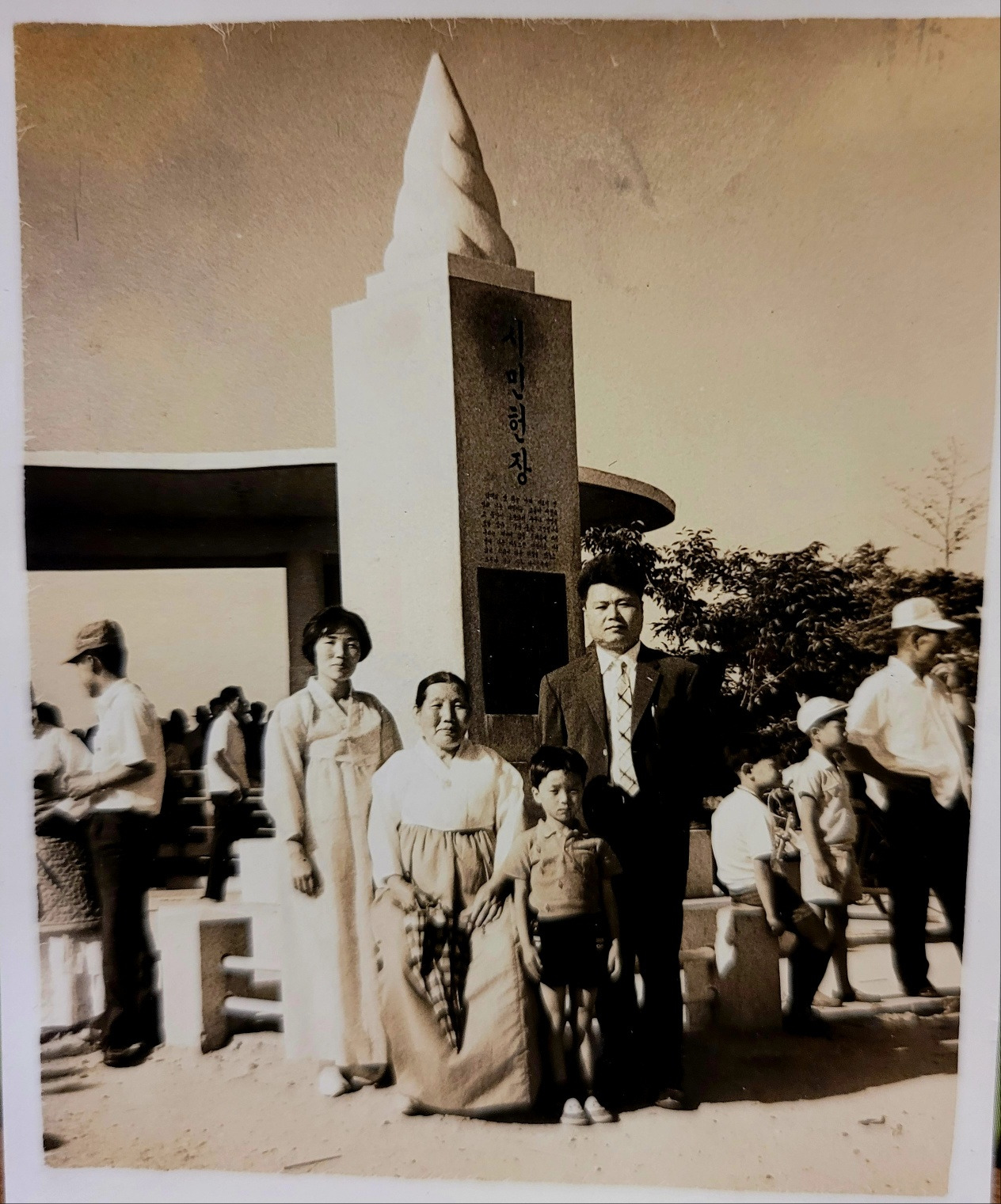 (내 나이 6살 아니면 7살, 그러니까 1969년 아니면 1970년 보문산. 시민헌장탑을 배경으로 외할머니, 아버지, 어머니와 필자. 시민헌장탑이라서 그런지 표정들이 사뭇 진지하다. 당시 보문산에는 사진사 아저씨들이 유료 사진을 찍어 주셨다. )