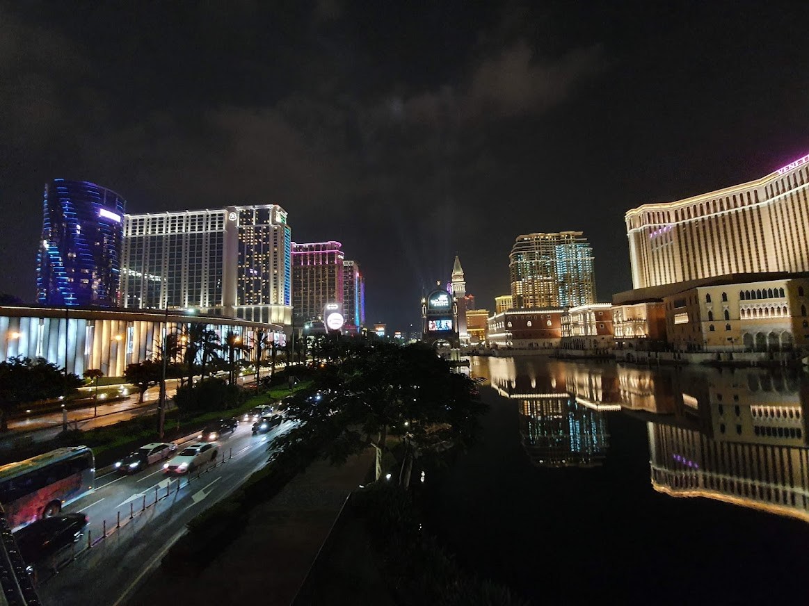 (한 지구에 최상위 브랜드 호텔을 모아놓은 마카오의 호텔시티, 마카오는 아시아의 라스베이거스로 불린다. 일 인당 GDP는 세계 최상위 수준인 86,000$(2022년)이며, 카지노 매출과 개인 소득 모두 미국의 라스베이거스를 추월했다)