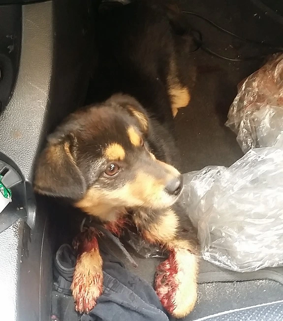 가까이 가보니 귀가 살짝 움직이는 것 같다. 더 가까이서 보니 숨도 쉬더라. 바닥에 피가 흥건하고, 많이 아팠던 모양인지 그 자리에서 똥을 싸서 엉망진창이었다. 혹시 손 대면 더 아플까봐 여기저기 전화부터 했다.