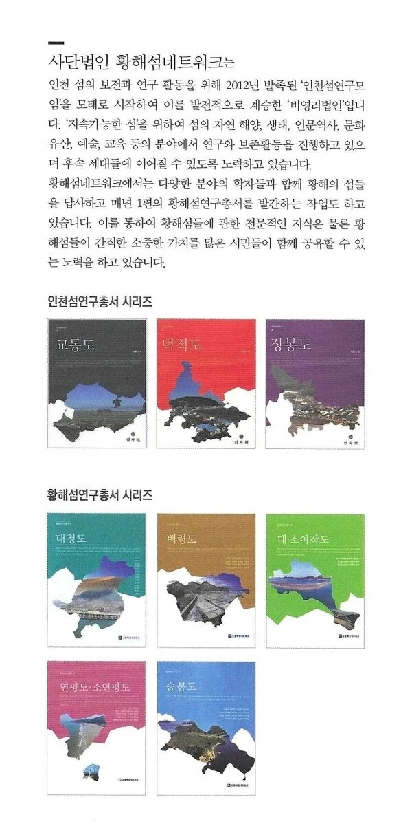이번 책을 발간한 사단법인 황해섬네트워크는 “사람과 사람을 잇고, 사람과 섬을 잇는 동반자”를 모토로 하는 비영리 법인으로, 2012년 발족한 ‘인천섬연구모임’을 모태로 섬의 보전과 연구, 기록과 디자인, 순례와 교육 등 다양한 시민참여 활동을 전개해왔다. 이번 총서는 이러한 활동의 연장선에서 섬의 문화·생태적 가치를 공공적으로 기록하기 위한 노력의 성과라고 할 수 있다.