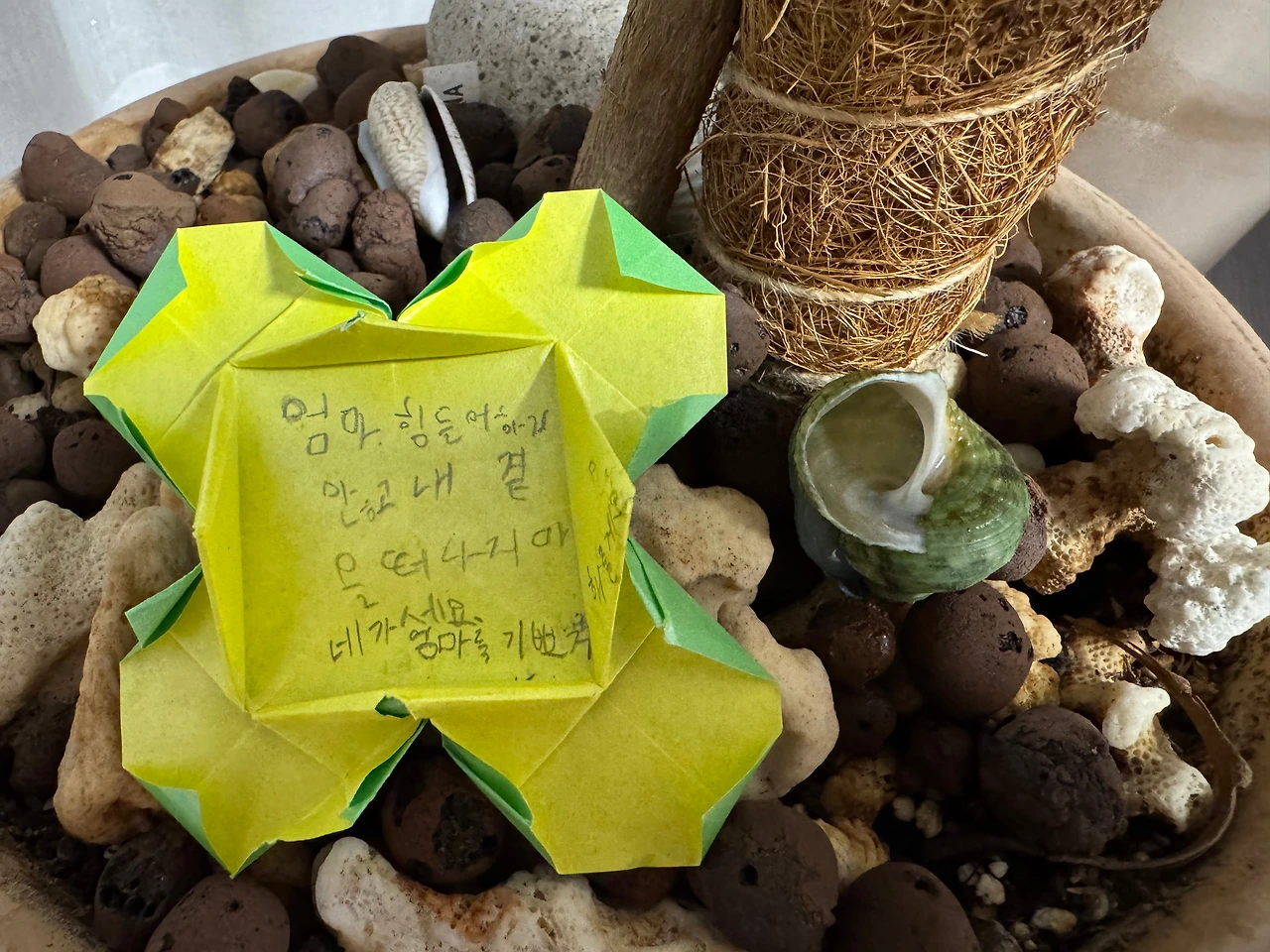 풀숲에서 따온 게 아니라 종이로 정성껏 접은 네잎클로버였죠.