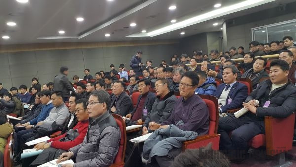 자리를 잡으려고 들어가니 이미 거의 만석. 어쩔 수 없이 앞쪽에 앉았습니다. 통상적으로 앞쪽은 행사와 관련된 사람들이 앉는 곳이라 피하지만 이번에는 어쩔 수 없었습니다. 자리에 앉아 잠시 다른 기사를 좀 썼어요. 그때 굳은 표정의 청중들이 우르르 들어오더군요. 모두들 중고차 매매업체 관계자들 이었습니다. 표정이 심상치 않았어요.
