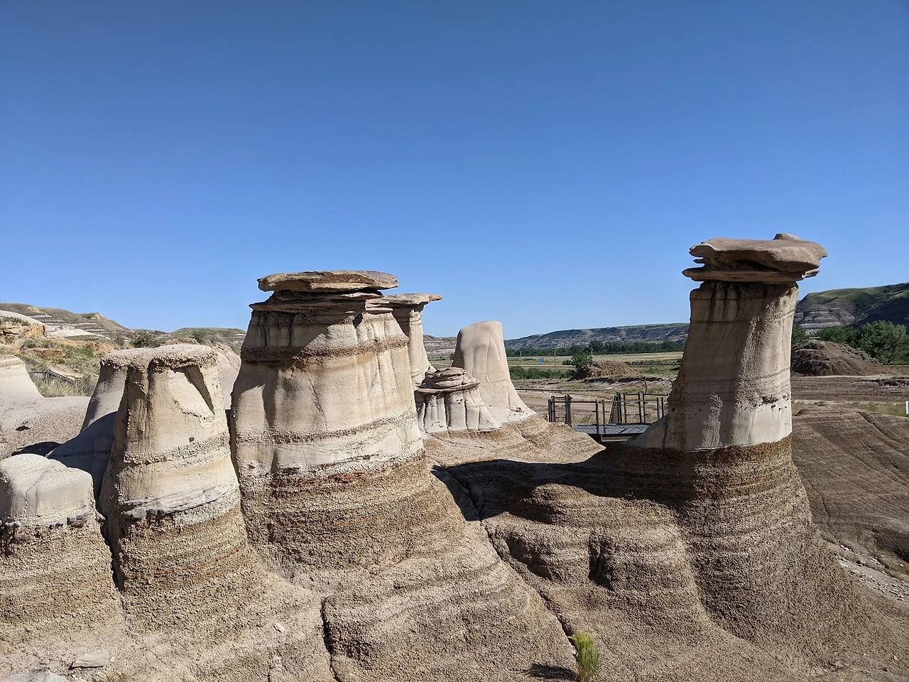 안내 표지판도 없고 정보도 귀한 드럼헬러 배드랜드의 주차장에 들어서자 괜히 시간만 낭비하는 게 아닌가 하는 의구심이 들었다. 이미 캘거리에서 드럼헬러로 넘어가는 길 양쪽에 장벽처럼 늘어서 있던 지형에 눈이 익숙해진 탓인지 주차장에서 보이는 풍경은 그다지 특별해 보이지 않았다. 거기에다가 대충 길목을 막고 주차요금을 받는 주차장 시스템이 너무도 어설퍼 보였다. 실상은 특별히 볼 것도 없는 곳을 대단히 볼거리가 있는 것처럼 꾸며두고 괜히 주차요금이나 뜯어가는 곳인가 싶은 생각에 속이 쓰렸다.