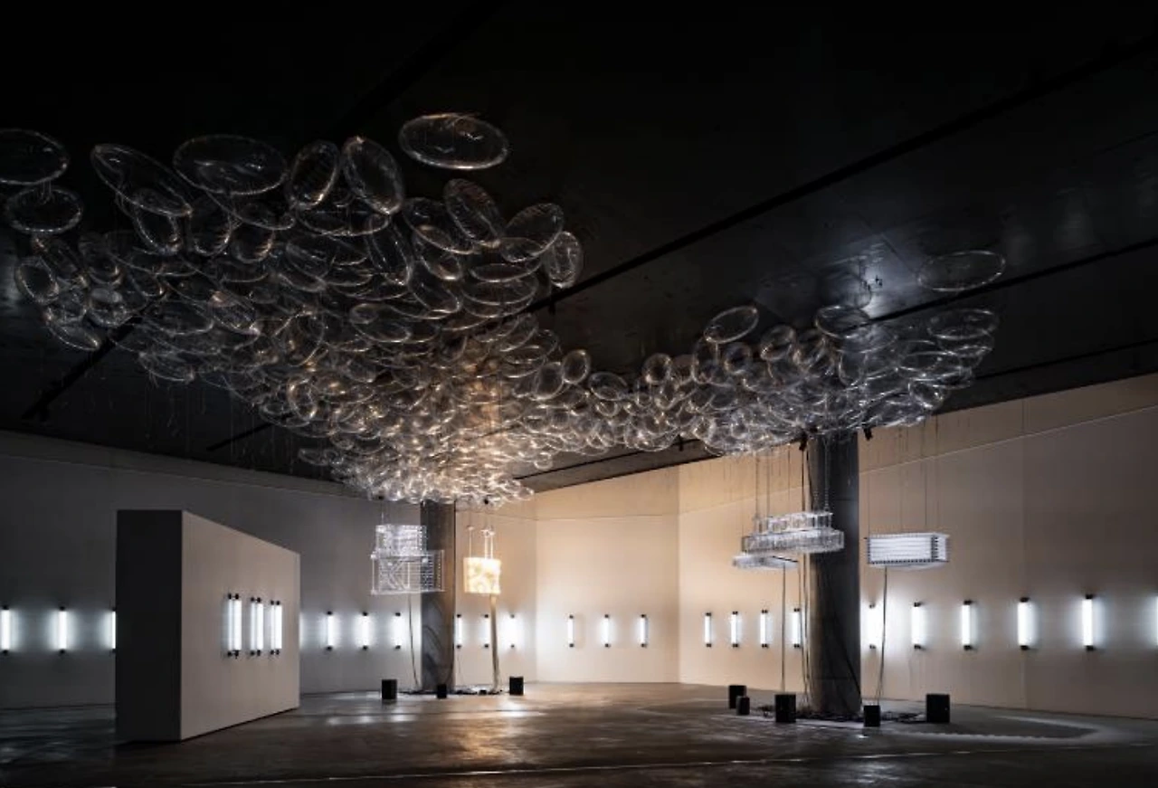 알제리 태생의 프랑스 설치 미술 거장 필립 파레노는 리움에서 열린 개인전 ‘보이스(VOICES)’에서 자신의 삶과 경험이 담긴 다양한 작품을 선보인다. 녹아내린 얼음 조각에서는 물이 뚝뚝 떨어지고, 배우 배두나의 목소리를 바탕으로 AI가 창조한 기이한 목소리가 전시장 곳곳에서 흘러나오며, 물고기 모양의 헬륨 풍선들이 둥둥 떠다니고, 자동으로 연주되는 야마하 피아노 위로 주황색 종이 눈이 쏟아진다.