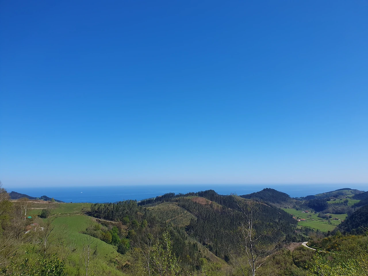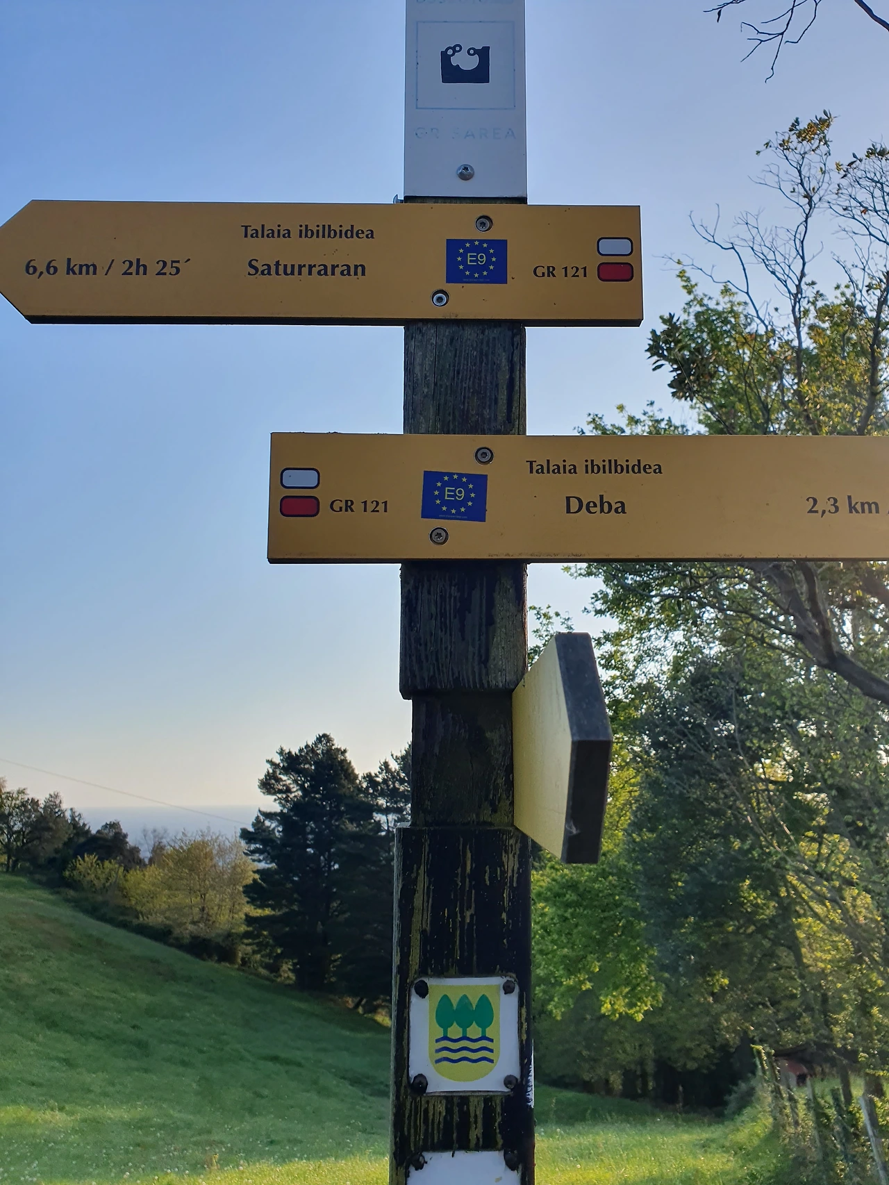 한 시간쯤 산을 오르다가 표지판을 보니 갈래길이 3군데로 나뉘었다. 거기서 눈에 익은 이름을 따라 (그곳이 맞는 방향이라 생각해서) 걸어 내려가는데, 1시간쯤 지나니 무언가 이상했다. 눈부시게 파란 바다색에 이끌려 사진을 찍다가 문득 어제 침대에 누워서 Markina 가는 길에 대한 설명을 읽을 때는 바다가 점점 보이지 않을 것이라 했는데 난 이상하게 걷는 중에도 계속 오른쪽으로 파란 바다가 보이는 것이 아닌가.