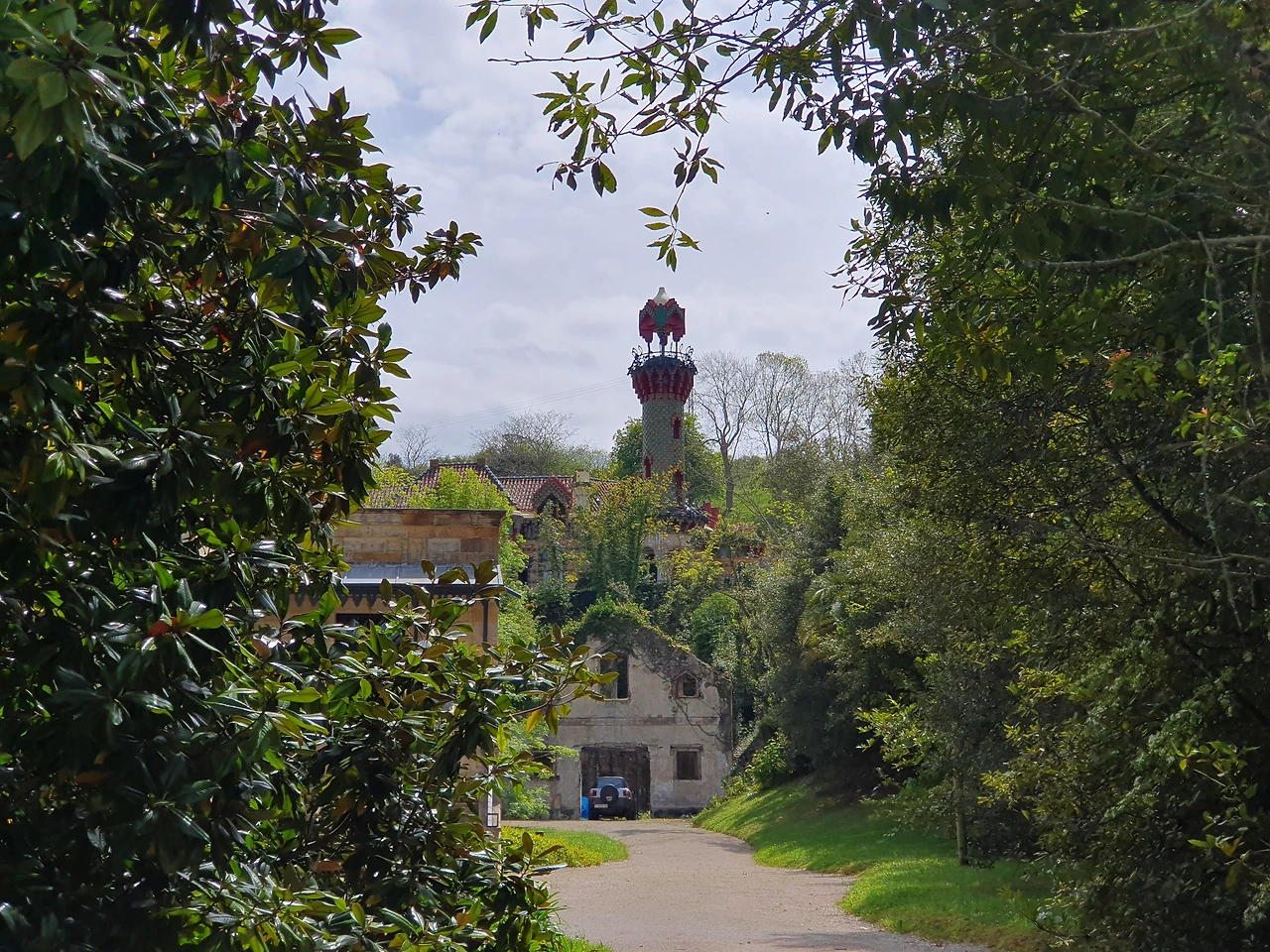 직원분의 안내대로 왼쪽 담벼락을 따라 코너를 두 번 돌아가니 옛날 스페인 왕이 여름휴가를 보내던 성이 나왔다. 이곳 또한 박물관으로 운영 중이었는데, 정원은 무료로 입장이 가능하다고 쓰여있었다. 아마 이곳에서 가우디 건축물을 볼 수 있다는 말이었던 것 같다. 혹시나 하는 마음에 나도 정원에 들어가니, 정말 가우디 건물이 조금 보였다. 오즈의 마법사에 나올법한 건물을 사진으로 남기고 다시 오늘의 목적지로 향했다.