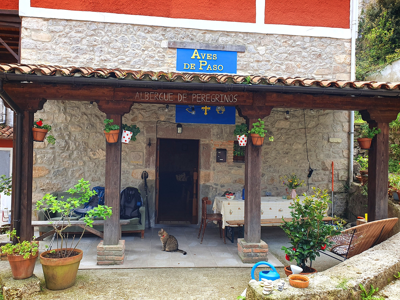 돌로 지어진 아기자기한 Aves de Paso 알베르게와 고양이