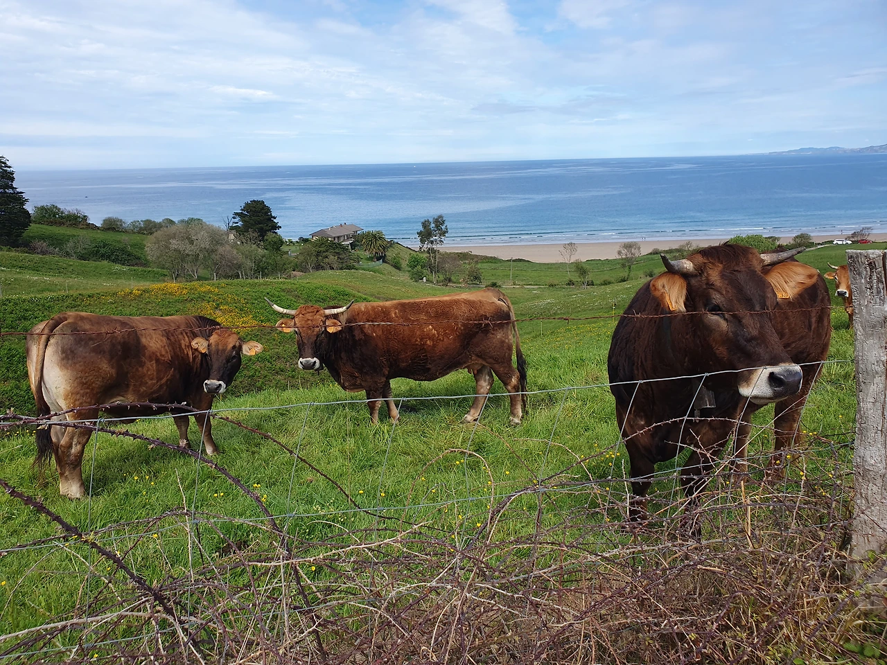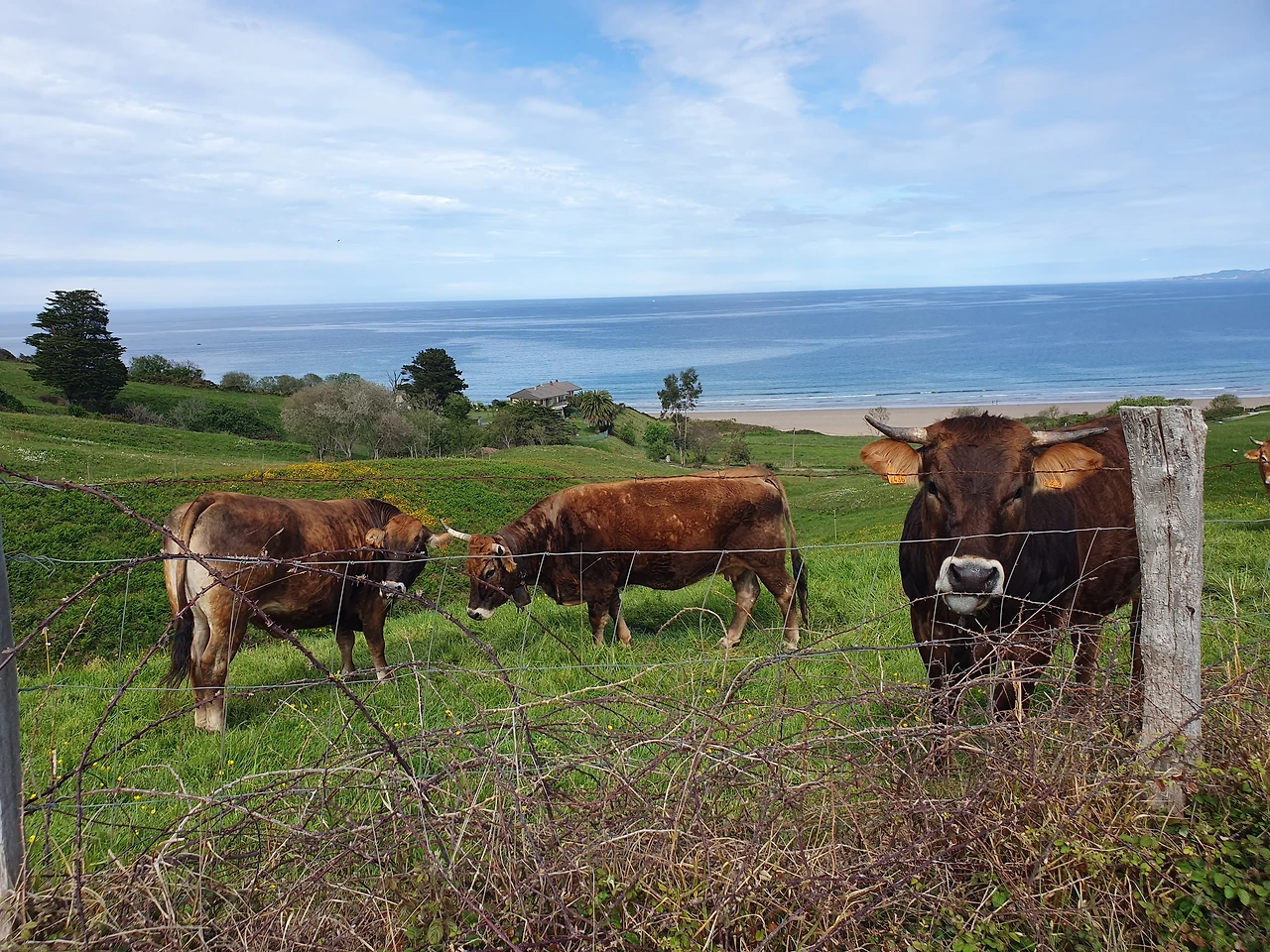 한 2시간 걸을 때까지는 아무도 만나지 못했는데 점점 사람들이 앞에 보이기 시작했다. 아침에 걸을 때는 주변에 아무도 없었는데, 다들 어디에서 나타난 것일까. 파란 하늘과 연두 들판의 소들이 번갈아가며 나를 쳐다봤다.
