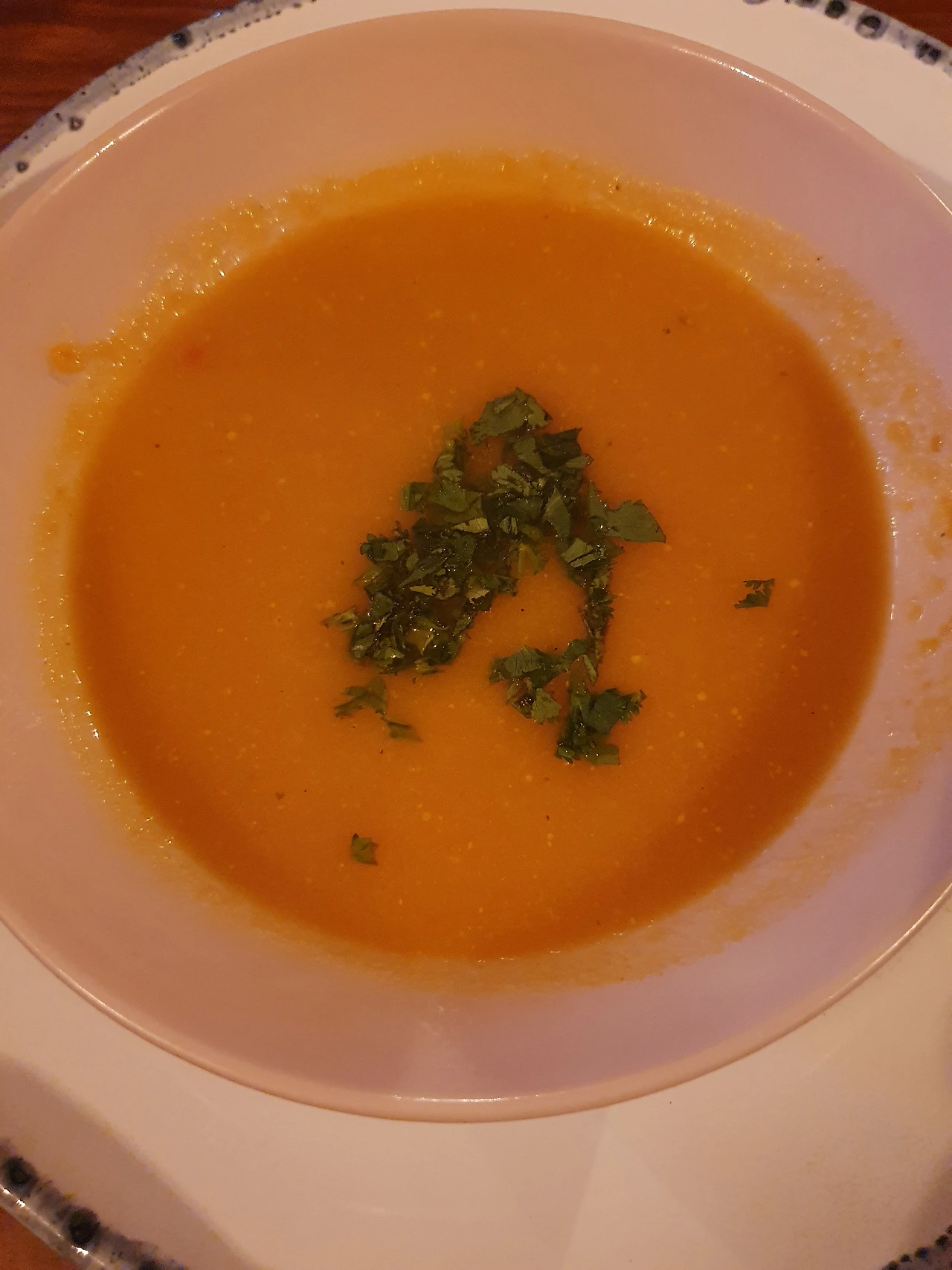 저녁시간에 모두들 식탁에 모였다. 10명이 최대 인원인데 오픈한 이후 몇 주정도 지나고부터는 늘 10명이 가득 채워 저녁을 같이 먹었다고 한다. 저녁은 오렌지색 수프, 샐러드와 콩과 치즈가 들어간 나초, 그리고 쌀이 들어간 디저트. 오늘이 네덜란드 왕의 생일이라 오렌지색 수프를 준비하셨다고 했다. 와인과 함께 후무스에 피타빵을 안주 삼아 저녁을 먹기 시작했다.