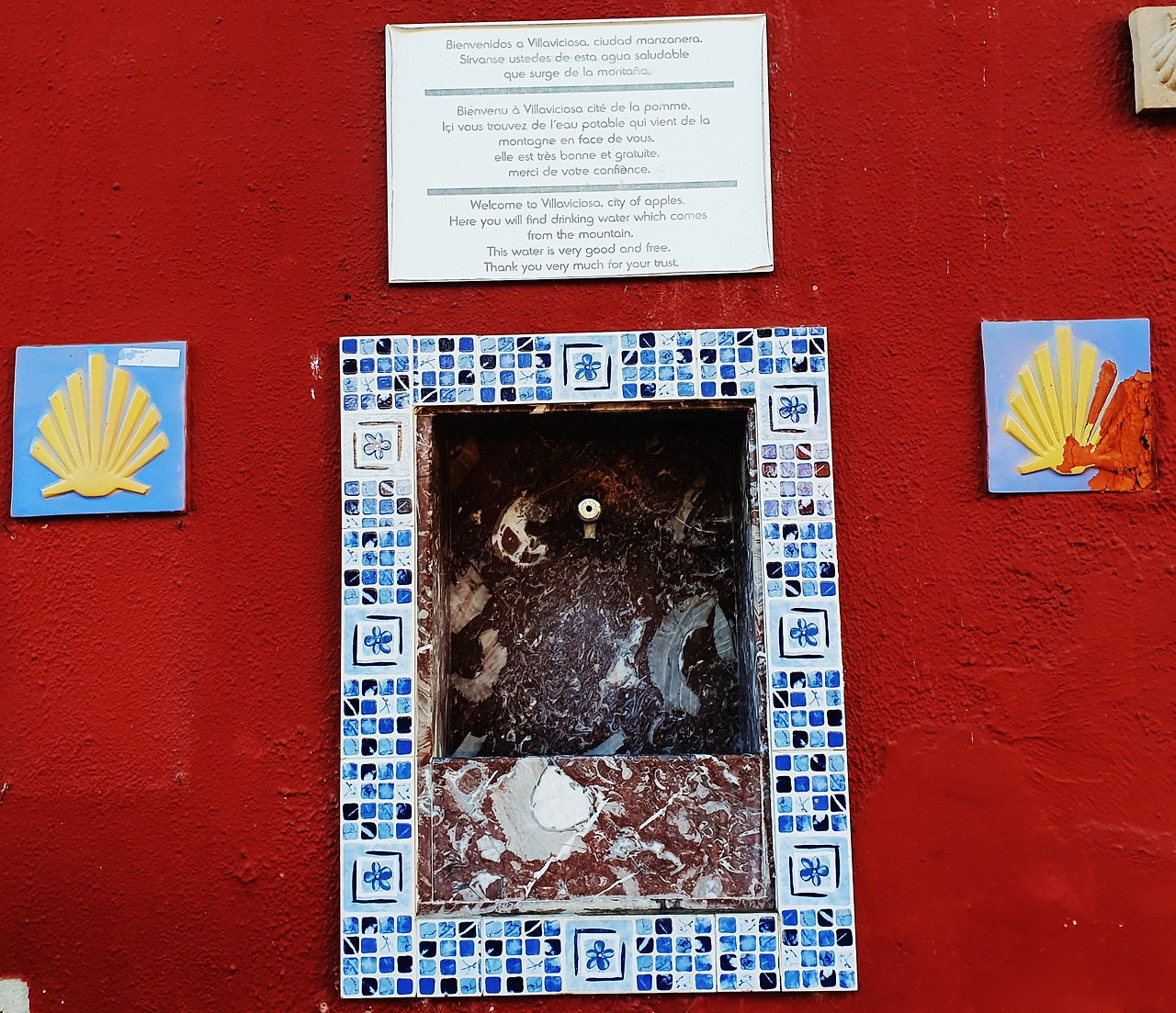 Villaviciosa 마을을 지나가는 순례자를 위한 샘물