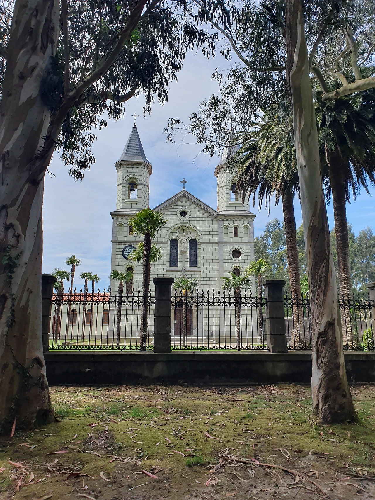하얀 성당을 지나쳤다. 시계가 12시 46분에 멈춰 있다.