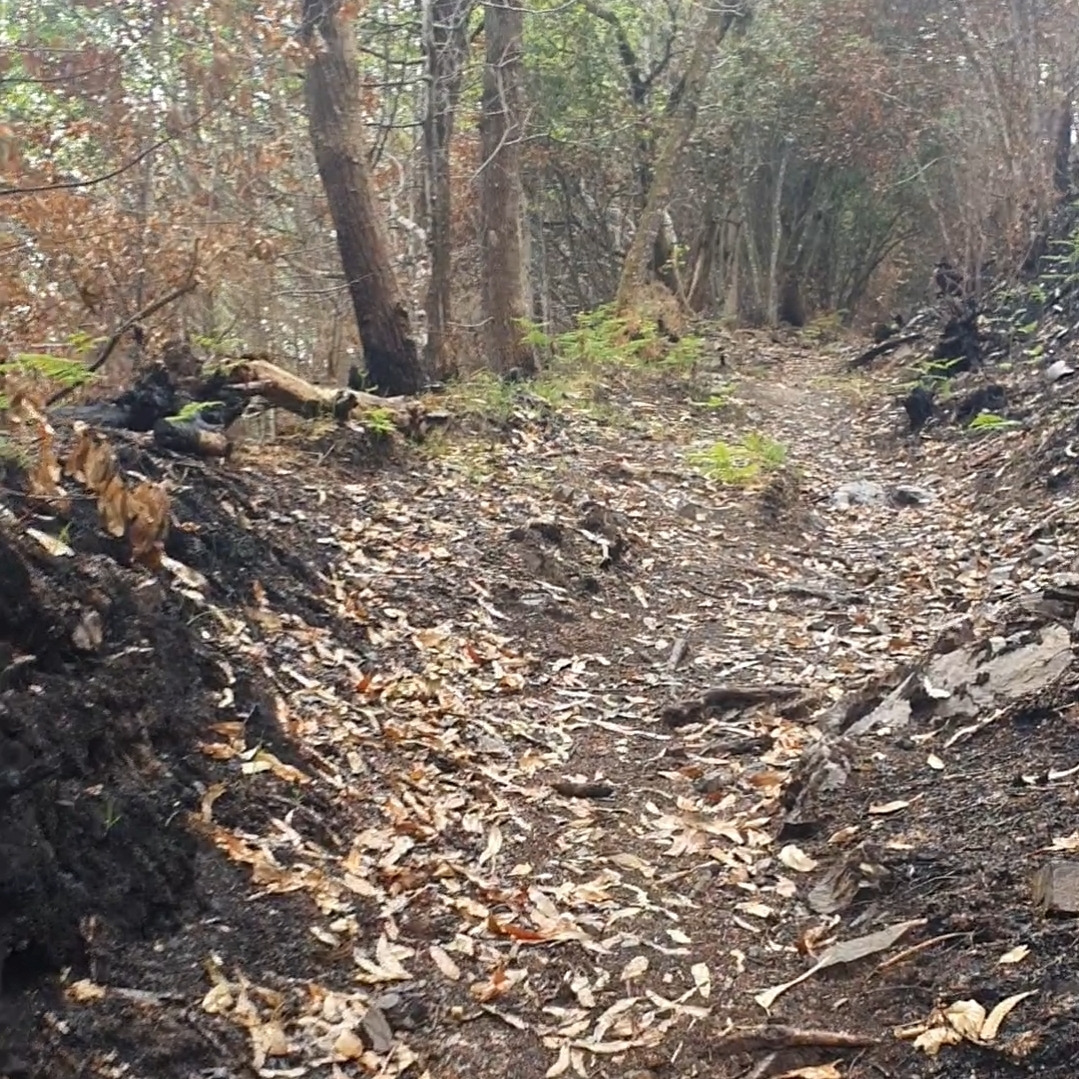 그렇게 짧은 뜻밖의 만남 뒤로하고 우리는 다시 한번 작별인사를 했다. 마을을 벗어나 조금 가파른 언덕 길을 들어섰다. 산을 오르기 시작하니 눈앞에 불에 탄 산이 펼쳐지기 시작했다. 처음에는 조금 불이 났거나 일부러 소작한 것인 줄 알았는데 걷는 길 내내 2시간 정도 불에 탄 산을 지나야 했다. 불에 탄 냄새로 목이 칼칼한 것은 차치하더라고 이렇게 넓은 방면에 산불이 난 것을 보게 된 건 태어나서 오늘이 처음이었다. 그렇게 안타까운 산을 동영상에 담고 있는데, 이럴 수가, 여우 한 마리가 멀리서 나타났다 홀연히 사라졌다. 다시 나타날까 싶어 계속 카메라는 준비하고 걸었는데 아쉽게도 여우는 다시 나타나지 않았다.