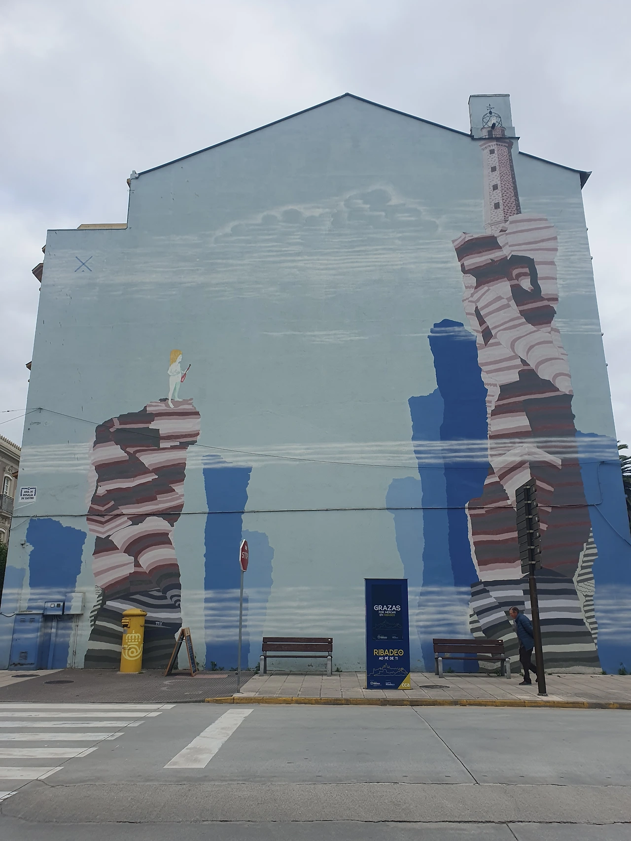 파란 긴 다리를 건너 Ribadeo 마을에 도착하니 정면에 보이는 건물에 멋진 그림이 그려있었고, 시내를 지나갈 때 마침 교회에서 종 치는 소리가 들려 그 순간은 가만히 서서 종이 끝날 때까지 종소리를 들었다.