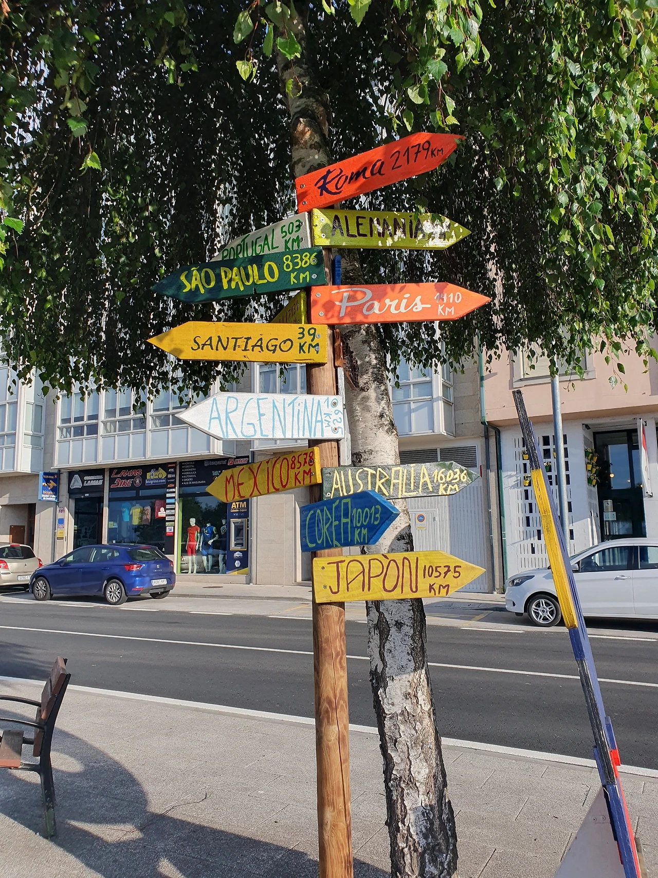 Arzua 마을과 종종 보이는 표지판