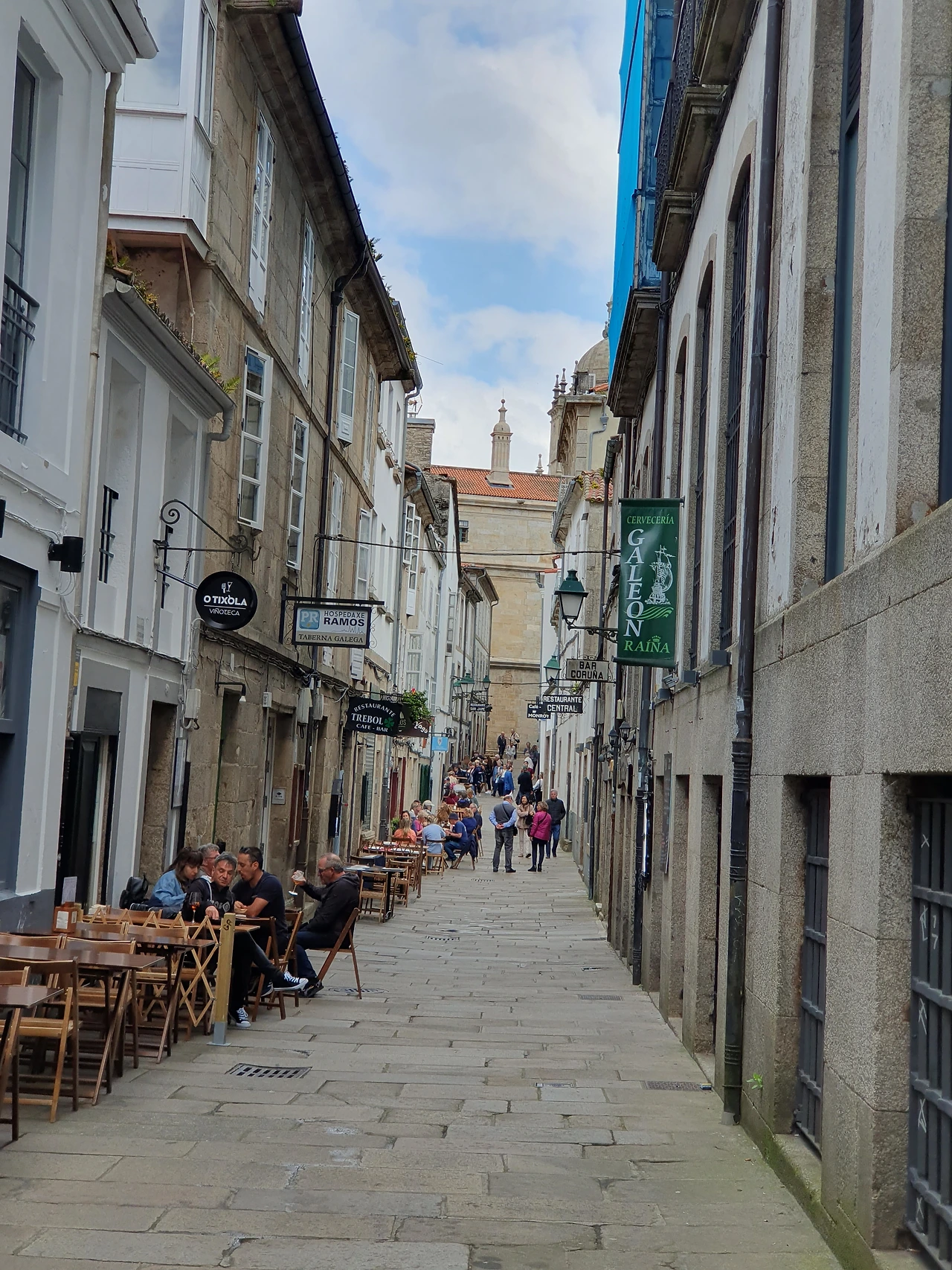 산티아고 골목길, 한 쪽으로 Bar와 레스토랑이 즐비하다.
