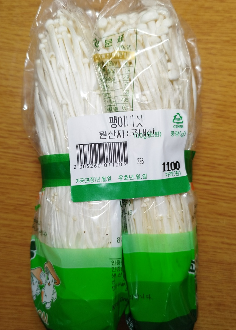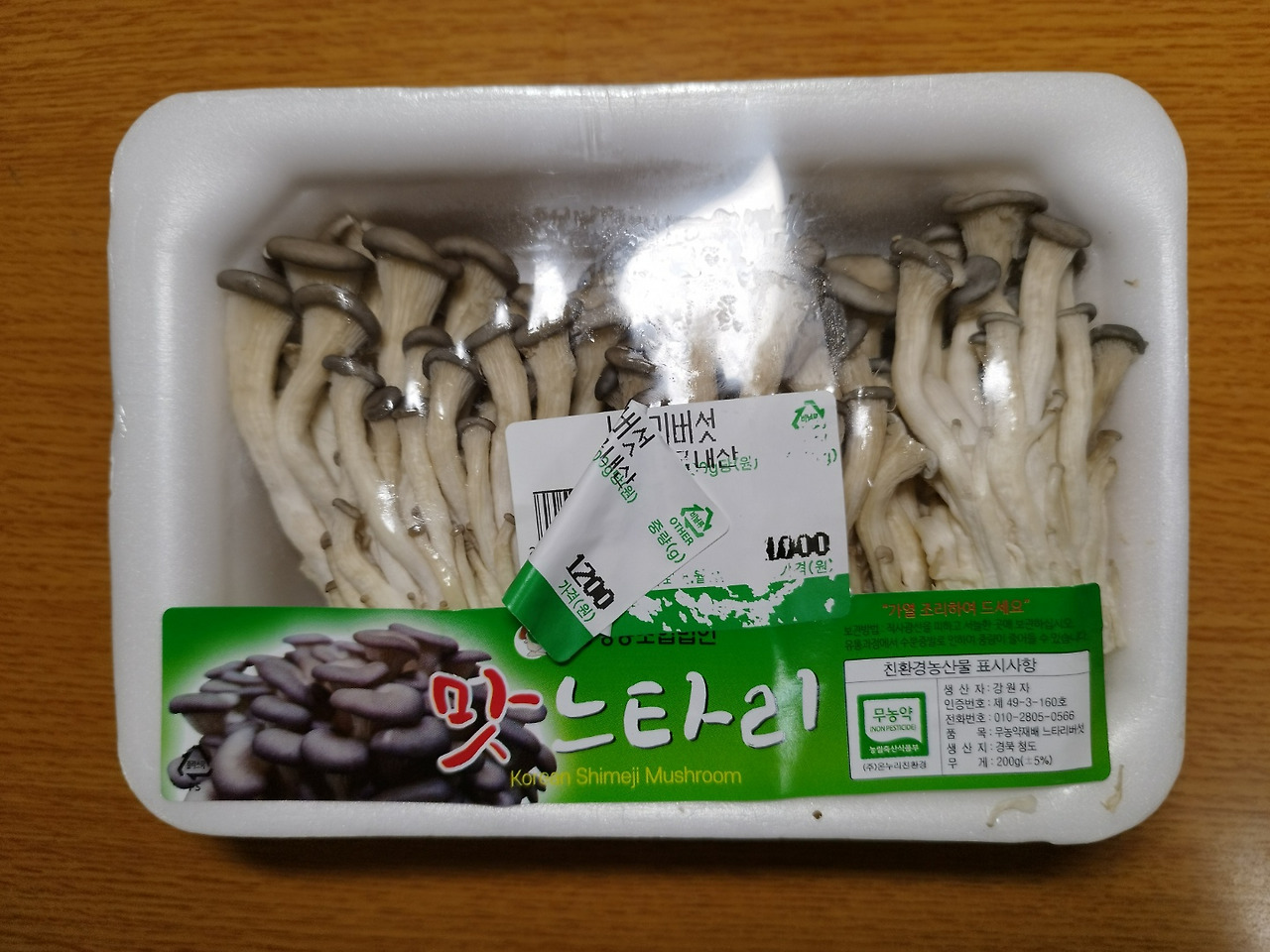 이 글을 퇴고하는 일주일여 만에 느타리버섯은 1,200원으로 뛰어 있었다. 400원 차이가 아니라 50% 폭등으로 체감되었다. 느타리버섯은 한 팩만 사고, 1,100원짜리 팽이버섯을 두 묶음 샀다. 팽이버섯은 세 봉지 한 묶음으로 1,000원이던 시절을 기억해 두 봉지 한 묶음에 선뜻 손이 가지 않을 뿐이었다. 한 때는 계란을 풀어 팽이버섯을 부쳐 먹기도 했었다. 칼을 써야 하는 새송이나 양송이와 달리 느타리든 팽이든 물에 대충 헹궈 밥이나 라면에 쭉쭉 찢어 넣으면 그만이니 내게 제격이었다.