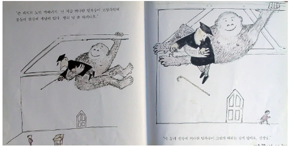 집집마다 어린이가 있는 집이면 한 권씩 가지고 있는 존 버닝햄의 그림책 <지각대장 존>에 대한 해석과 마찬가지입니다. 존 패트릭 노먼 맥 헤너시는 학교에 다니는 어린이입니다. 매일 일찍 집에서 나오지만 등굣길에 판타지 상황에 빠지면서 지각을 합니다. 담임선생님은 존의 지각 사유를 듣고 거짓말이라고 벌을 줍니다. 그런 상황이 3번 일어납니다. 그리고 더 이상 존에게 등굣길 판타지 상황은 일어나지 않습니다. 따라서 존은 지각하지 않습니다. 시간 안에 교실에 도착한 존에게 담임선생님은 도와달라고 요청합니다. 담임선생님을 거대한 고릴라가 끌어안고 천장에 매달려 있기 때문입니다. 이때 존이 말합니다. “이 동네 천장에 거대한 털북숭이 고릴라 따위는 살지 않아요, 선생님.”