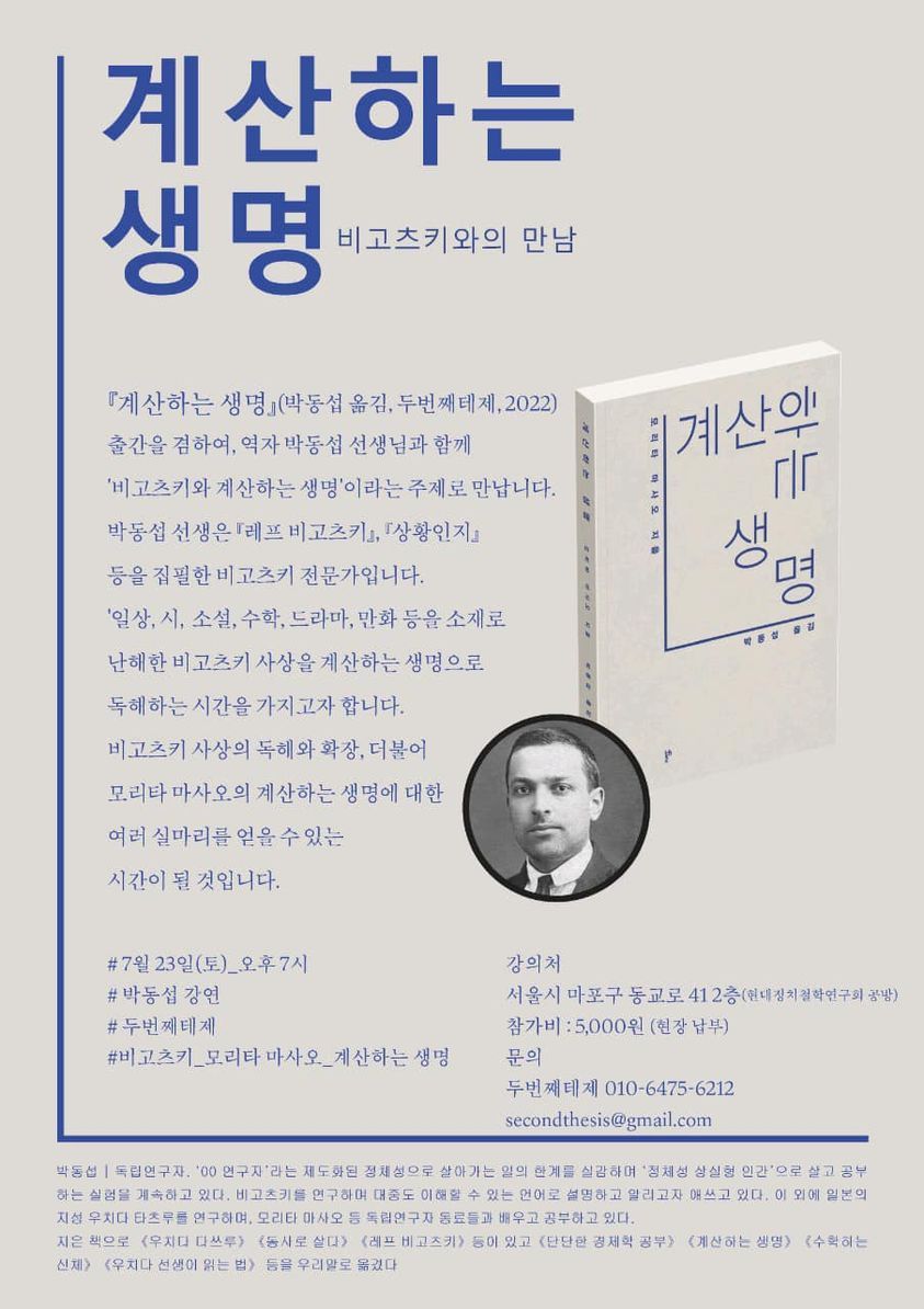 모리타 마사오의 최신 저서 <계산하는 생명>이 한 달 전에 번역 출간됐고, 우리는 번역한 박동섭 독립연구자를 직접 만날 기회가 생겼다.