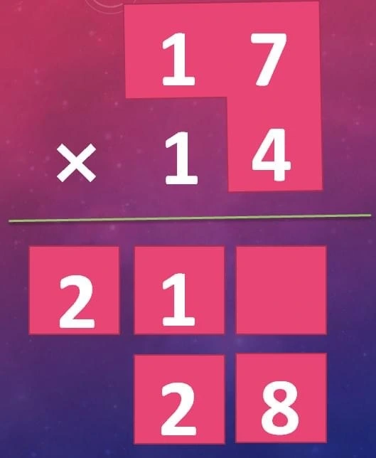 3️⃣위 아래 일의 자리끼리 곱해서 십의 자리와 일의 자리에 쓴다.(결과가 9이하면 일의 자리에 쓴다)
