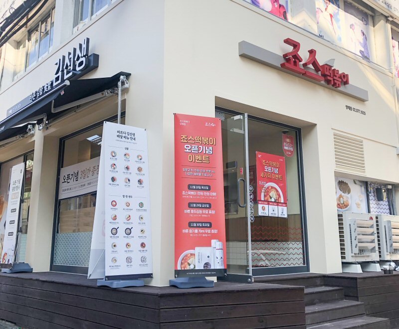 4. [죠스떡볶이]에는 김밥 메뉴가 없다. 반대로 [바르다김선생]에는 떡볶이 메뉴가 없다. 김밥과 떡볶이를 같이 즐기고 싶은 소비자에게는 늘 1%가 아쉬웠다. 그런 페인포인트(pain point) 덕분인지, [죠스떡볶이]와 [바르다김선생]은 결합하여 듀얼매장을 만든다고 발표했다. 한 개의 매장에서 두 개의 브랜드를 동시에 운영하는 방식이다. 두 브랜드는 서로 신메뉴를 개발하는 수고를 하지 않아도 되고 키오스크나, 포장재 등 다양한 부분에서 비용을 절감할 수 있다. 소비자야 뭐 떡볶이&김밥이라는 진리를 얻을 수 있으니 만족이다.