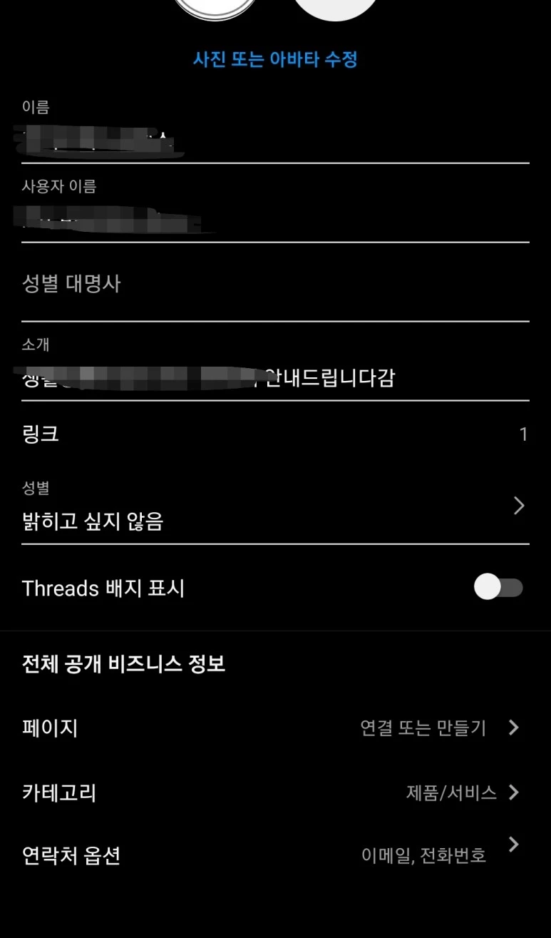비지니스 계정은 메인 화면에서 '프로필 편집'을 누르면 누구나 쉽게 변경을 할 수 있다