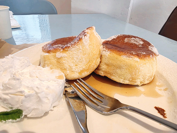 황리단길이 마음에 들었던 또 다른 이유는, 수플레 케이크를 다루는 곳이 많았다는 것이다. 내가 사는 곳은 수플레 케이크를 파는 곳이 없으므로, 나는 경주에 머무르는 3일동안 수플레 케이크를 두번이나 먹었다. 혈당이 오르던 말던, 가격이 비싸던 말던 그런것은 중요하지 않았다. 지금 먹어두지 않으면 최소한 한달정도는 못먹을지도 몰랐다. 수플레 케이크는 금방 만들어 지지 않아서 꽤 오랜시간을 기다려야 했지만, 그런것도 중요하지 않았다. 한번은 생크림과 메이플 시럽을 듬뿍 찍어서, 또 한번은 딸기 수플레 케이크로 먹었다. 둘다 만족스러웠다.