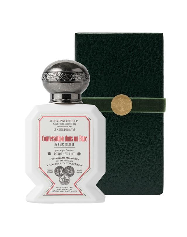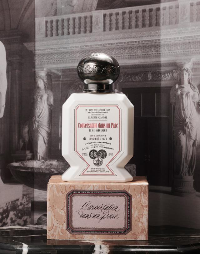 바틀마저 박물관 조각상을 떠올리게 만드는 불리1803의 이 컬렉션은 루브르 박물관에 있는 8가지 그림들에서 영감을 받아 만들어졌다. ‘공원에서의 대화’ 는 영국의 화가 토머스 게인즈버러의 동명 작품에서 영감을 받은 향수로, 보드라운 장미비누 향이 난다. 터키산 장미 부케와 베르가모트, 페퍼민트의 향이라고만 설명돼 있는데, 불리1803의 향수들이 알코올을 쓰지 않은 ‘워터 베이스’ 향수들이라 원료가 단순해서 그렇다. 보통 향수는 지속력을 높이기 위해 알코올 베이스로 돼 있어 처음 뿌리면 머리 아픈 특유의 알코올 냄새가 나는데, 불리의 향수들은 말 그대로 ‘물’이라 그런 느낌이 덜하다. ‘공원에서의 대화’ 작품을 보면 산책 중인 연인의 주변에 꽃이 만개해 있고, 흙과 풀이 사람만큼 도드라져 있는 것을 볼 수 있다.