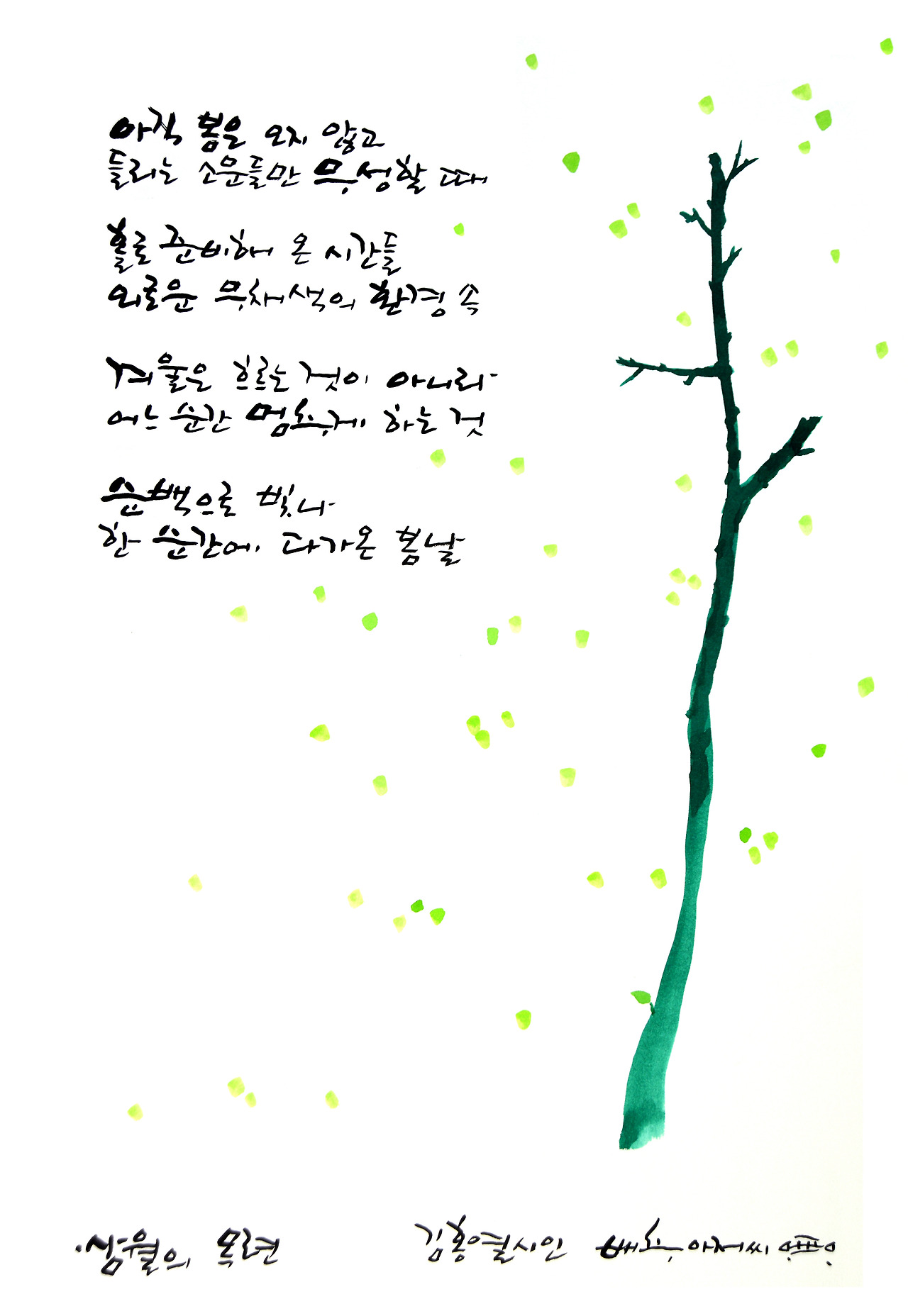 캘린더 상 봄은 이미 와 있고 여기저기에 봄 꽃이 피었다고 말들은 하지만 땅 위 조그마하게 얼굴 내민 풀 꽃몇 개와 산수유 같이 봉우리 작은 꽃들이 대부분이다. 애써 눈 크게 뜨고 찾지 않으면 보이지 않는 꽃이 대부분이다. 내가 봄 꽃이다, 하고 당당하게 선언하는 꽃들이 아니다. 이럴 때 제일 먼저 그 강한 인상을 드러내는 것이 목련이다. 성공회대 교정에 그제부터 하얀 목련이 피기 시작했다. 목련의 메시지는 한 하나다. 이제 봄이다. 무채색의 겨울은 가라. 끝났다. 순백색의 봄날이 이제 시작된다. 꽃 하나가 지난겨울을 멈추게 하고 새로운 시간을 흐르게 한다. 목련을 사랑하는 이유가 이 것이다. 당신은 홀로 빛난다. 당신만이 홀로 빛난다.