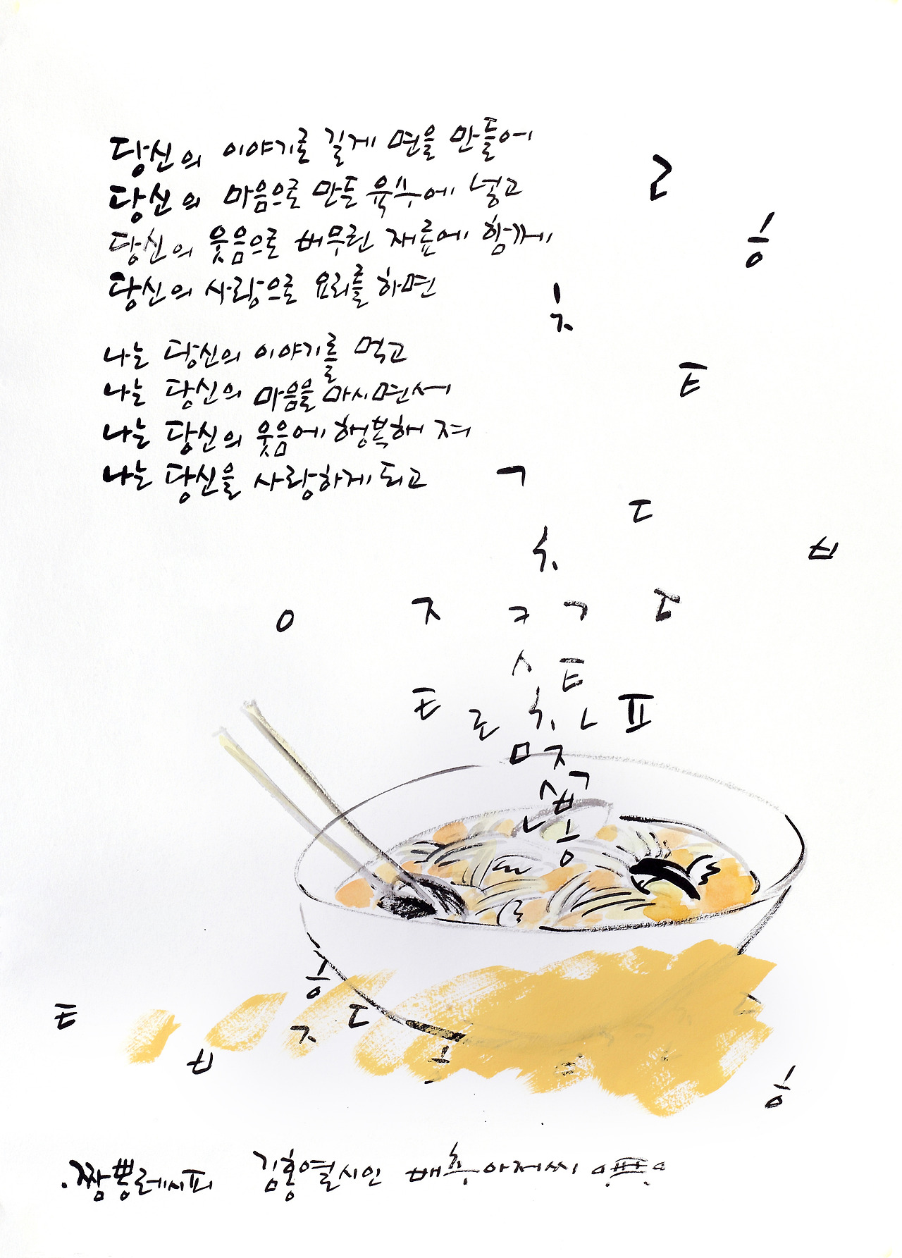 특히 과음한 다음 날, 집에서 시켜 먹는 짬뽕은 정말 맛있다. 주문하는 순간부터 행복해진다. 먹방이 대세인 시대 나도 짬뽕을 만들어 본다. 내 재료는 백종원의 그것과 다르다. 당신이 내게 들려준 이야기, 당신의 사랑스러운 마음, 당신의 그 환한 웃음, 그리고 그 모든 것 위에 내 사랑을 담아 짬뽕을 만든다. 이제 내 사랑에 취해 해장이 필요한 당신에게 짬뽕을 건넨다. 우선 국물부터 천천히 마셔 보세요. 내 사랑에 계속 취할 겁니다….