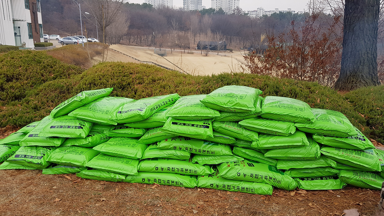 한 필지당 4포대씩 뿌려줍니다.