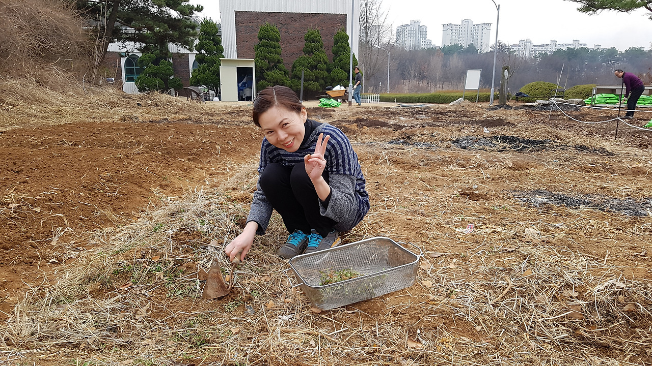 예쁜 최정화 전도사님입니다. 냉이 캐는 소녀!!