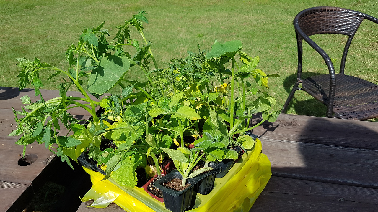 왼쪽은 제 밭에 심을 가지, 오른쪽은 공동 밭에 심을 오이, 호박, 토마토입니다.