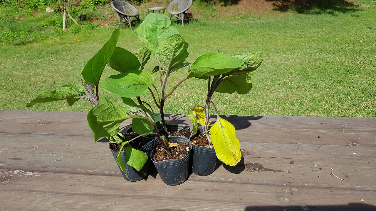 제 밭에 심은 가지입니다. 다섯 개 정도면 실컷 먹을 수 있을 겁니다.