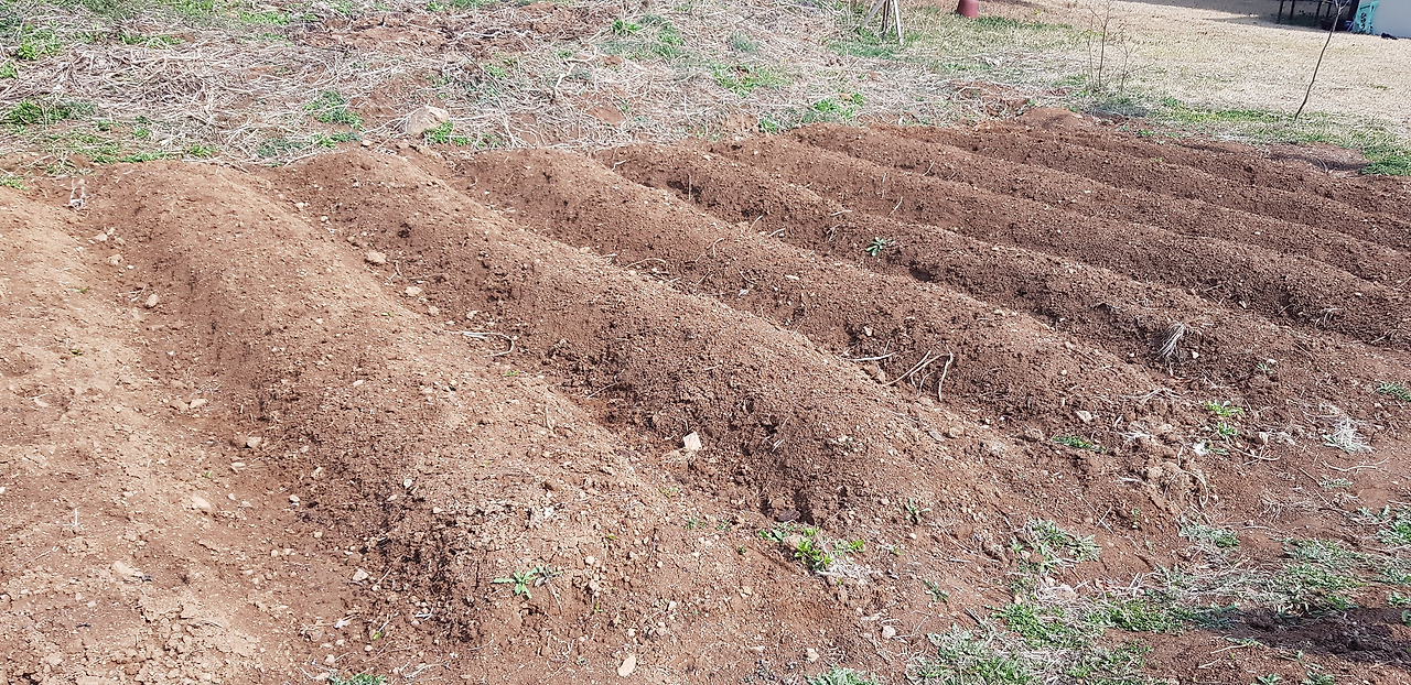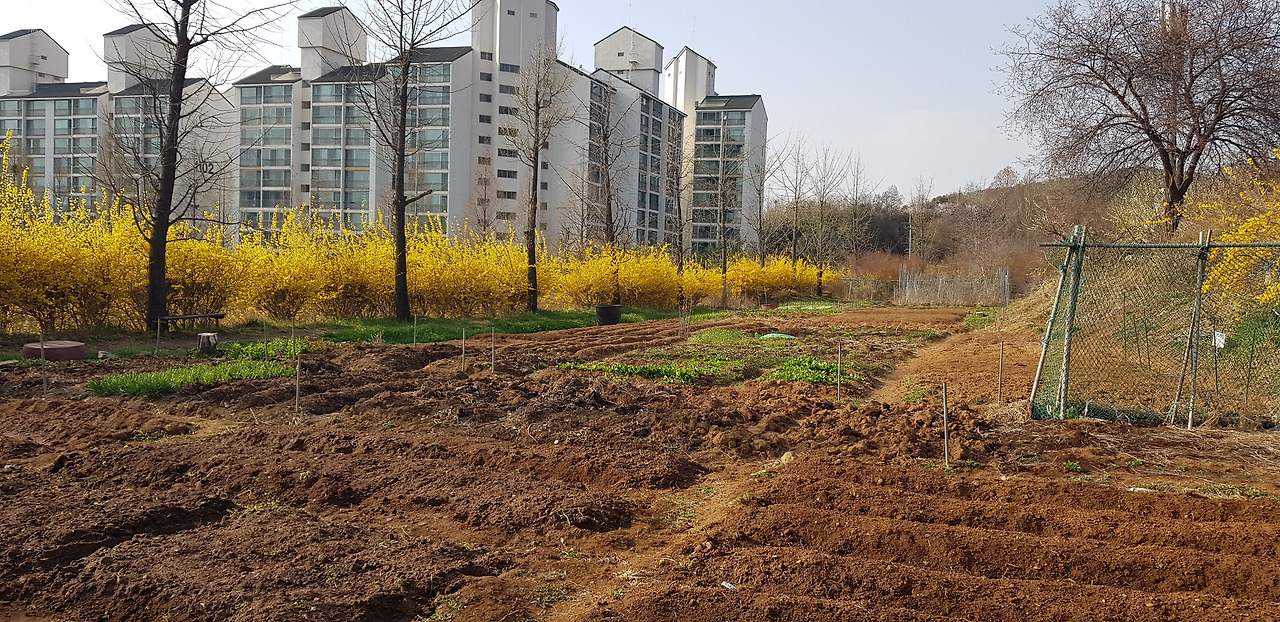 이주 전 감자 심는 곳입니다. 아직 싹이 나오지 않았어요.