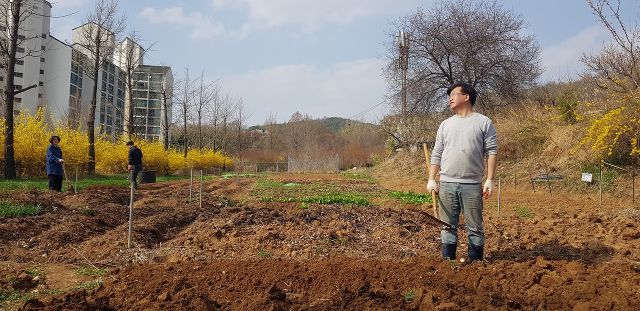씨앗 심기 전에 삽질하고 있습니다. 멋있게 찍어달라 부탁했더니 쓸만한 사진이 없어 옆모습 사진 골랐습니다.